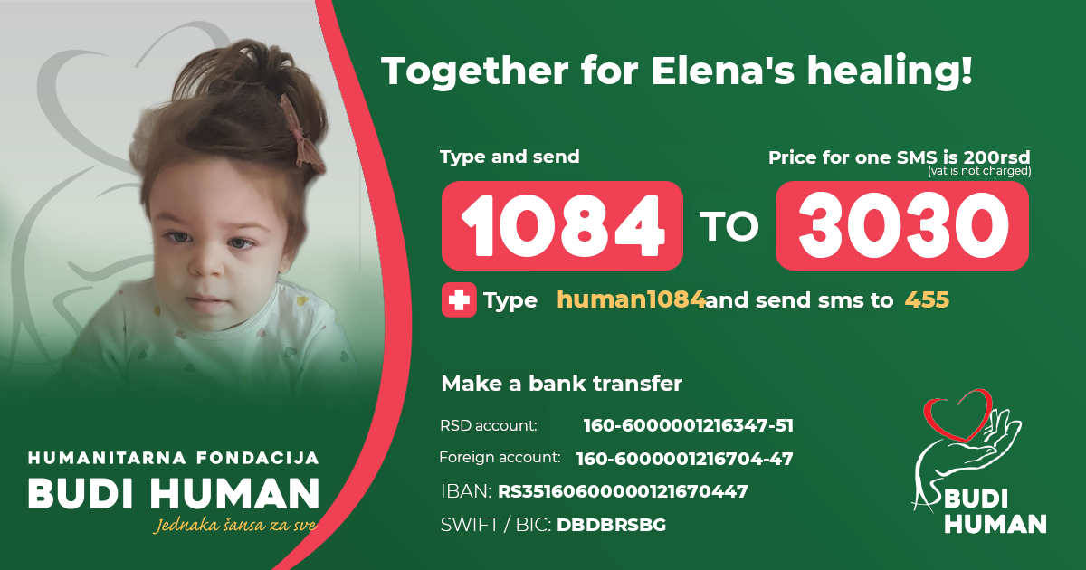 The council of the world's greatest experts on this disease, with which the parents are in direct contact, found that the best treatment for Elena would be to start enzyme replacement therapy with Lamzede as soon as possible, which is currently the only registered medicine for this disease and it should be available in Serbia soon. Enzyme therapy should slow down the progression of the disease, cleanse the body of accumulated oligosaccharides as much as possible (unfortunately the therapy does not penetrate the central nervous system). It is also necessary to do a bone marrow transplantation as soon as possible, because that is the only and best solution for that disease. If the transplantations were successful, the body would just start producing the enzyme that Elena lacked and she would be able to have a normal life. Her parents decided to look for a solution abroad because It is not a practice in our country to perform a bone marrow transplantation for this disease and children with this diagnosis have not yet been treated in Serbia.