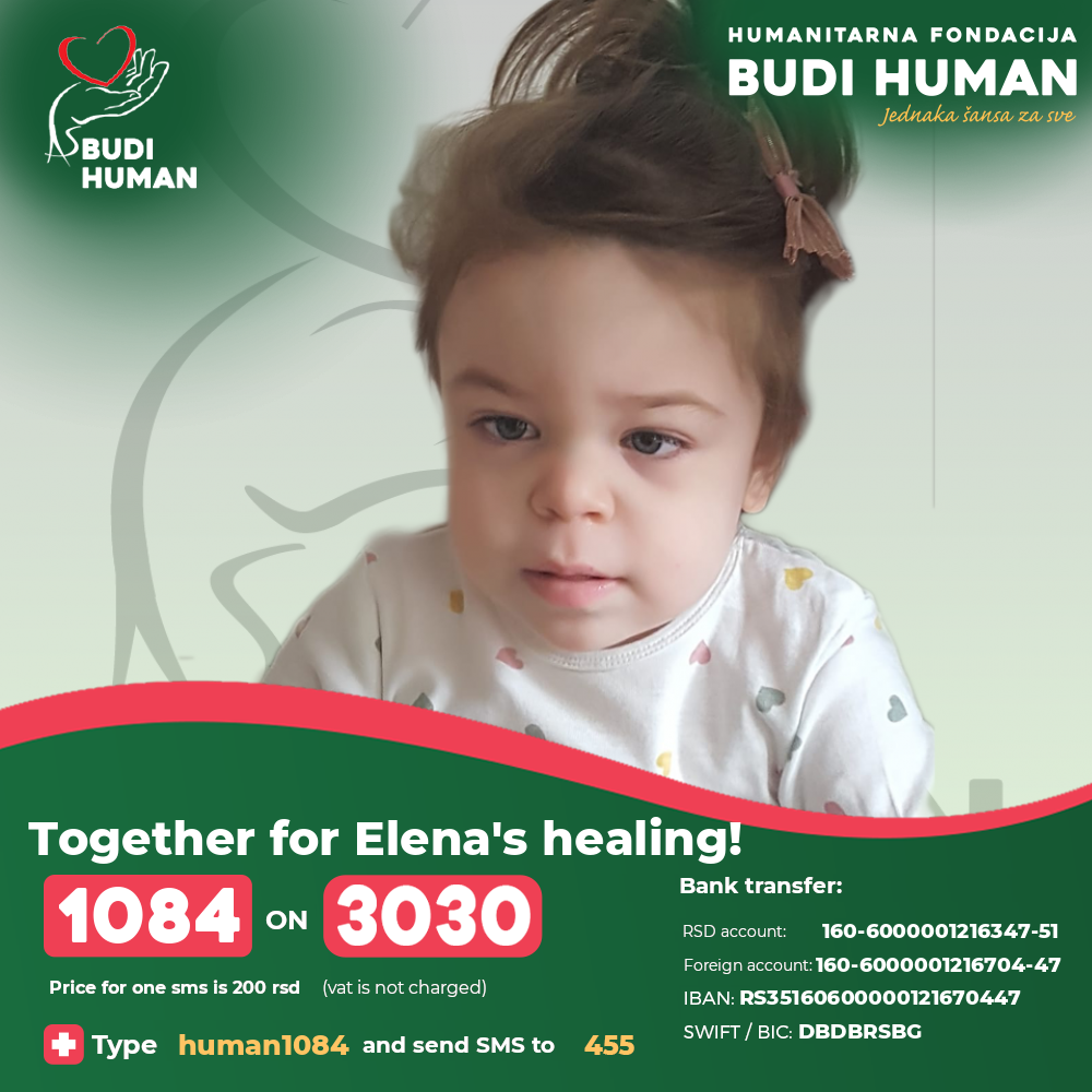 Elena is still not able to walk independently or to speak, but despite all the adversities she faces every day, she is a cheerful and smiling girl who likes to play. Parents believe that their Elena can also have a happy childhood and a normal life, and that is why we all need to help her now.