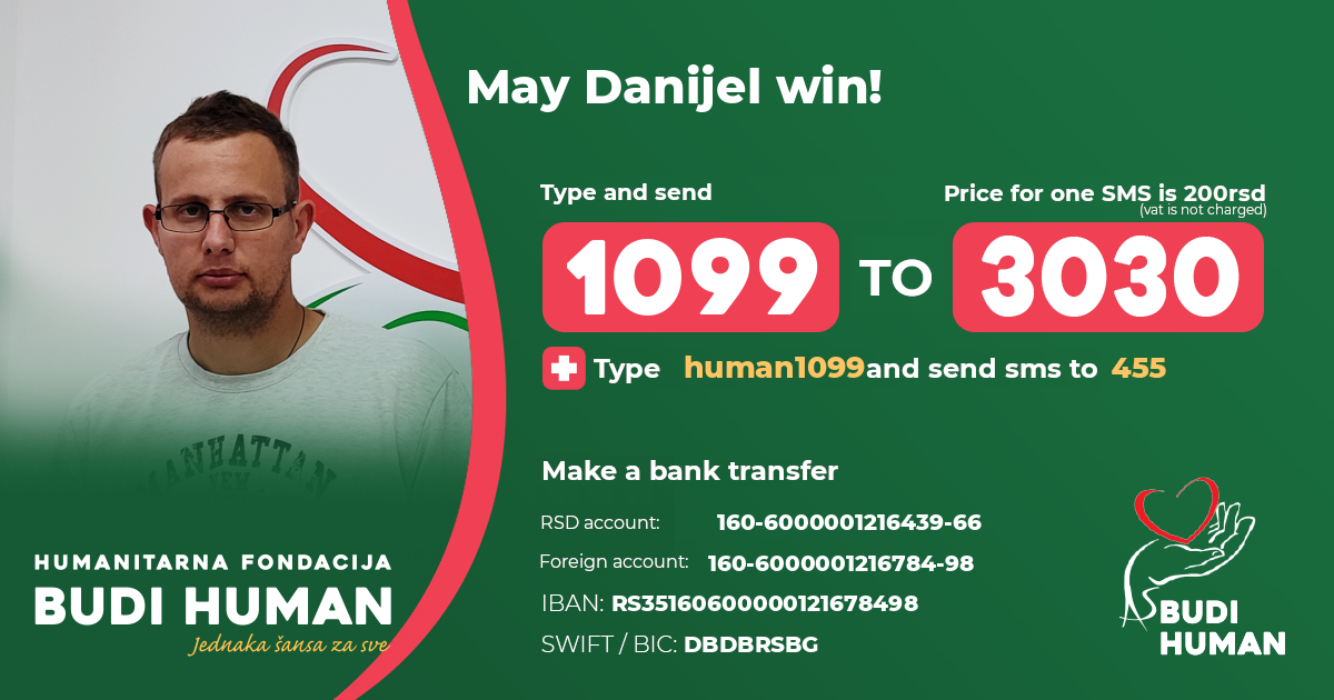 raises funds for Danijel Obućina (1988).