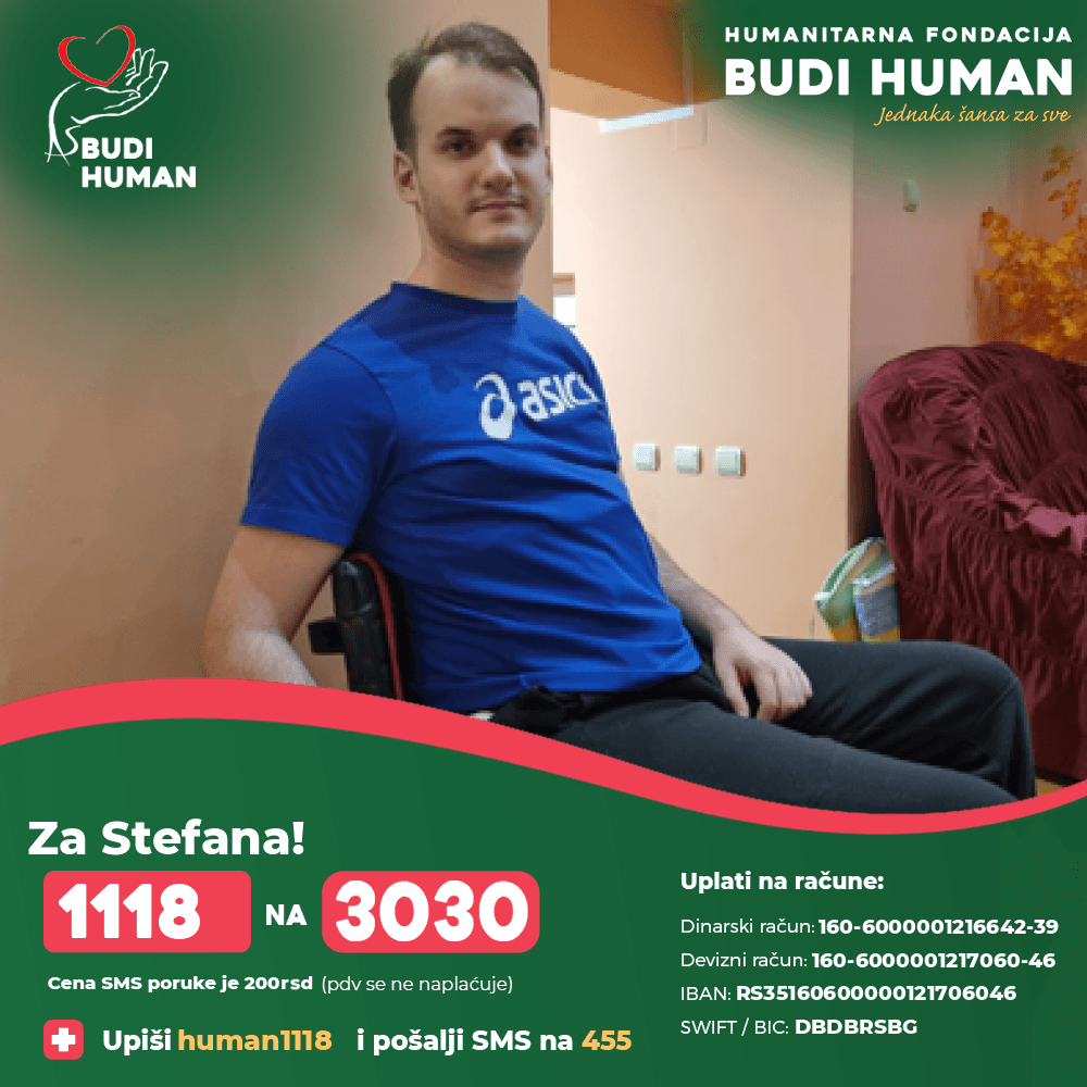 Rehabilitation followed at the Rehabilitation Clinic "Dr Miroslav Zotović" in Sokobanjska in Belgrade, where Stefan spent 6 months. He had daily physical therapy and work to become independent and prepare for life in a wheelchair.