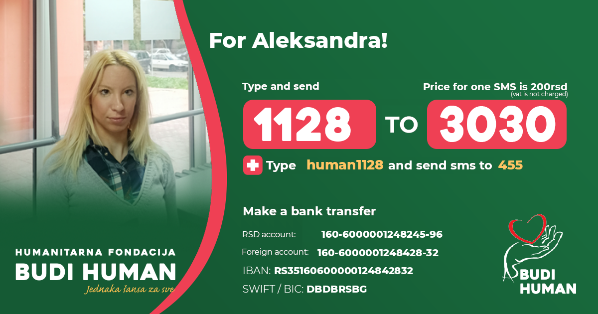 Aleksandra was born on 30 September 1992 in Belgrade as a healthy child. At the age of one and a half, the doctor noticed slow motor development.