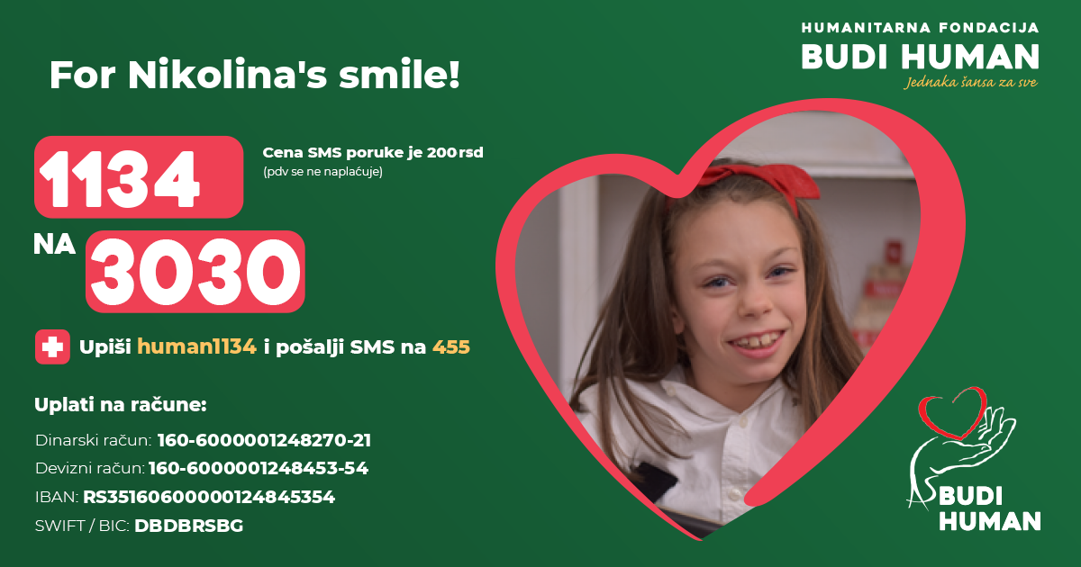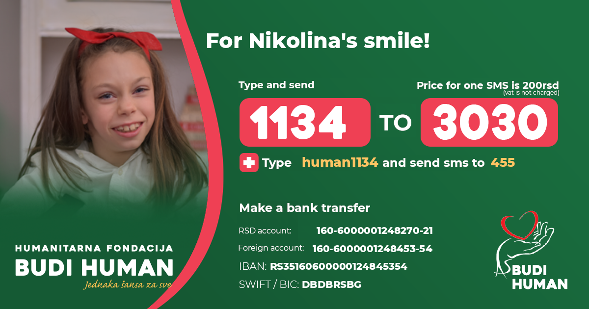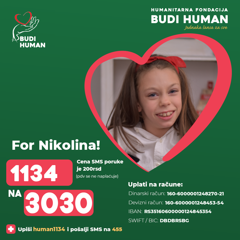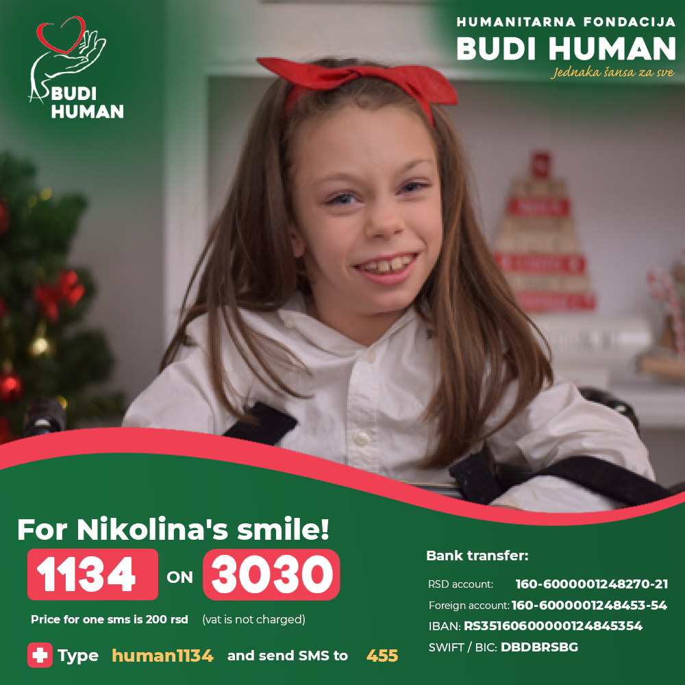 Nikolina was born on 18 March 2011 in Belgrade. She was the first child  in the family born after a regular and maintained pregnancy. Due to complications at birth, she was out of oxygen, which left serious consequences for her health.