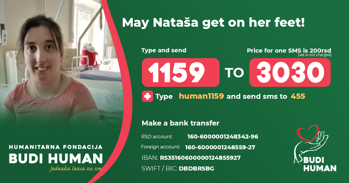 Nataša's family is not able to provide the necessary funds, so they are asking all humane people to help them.