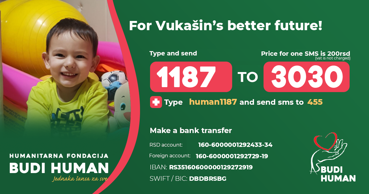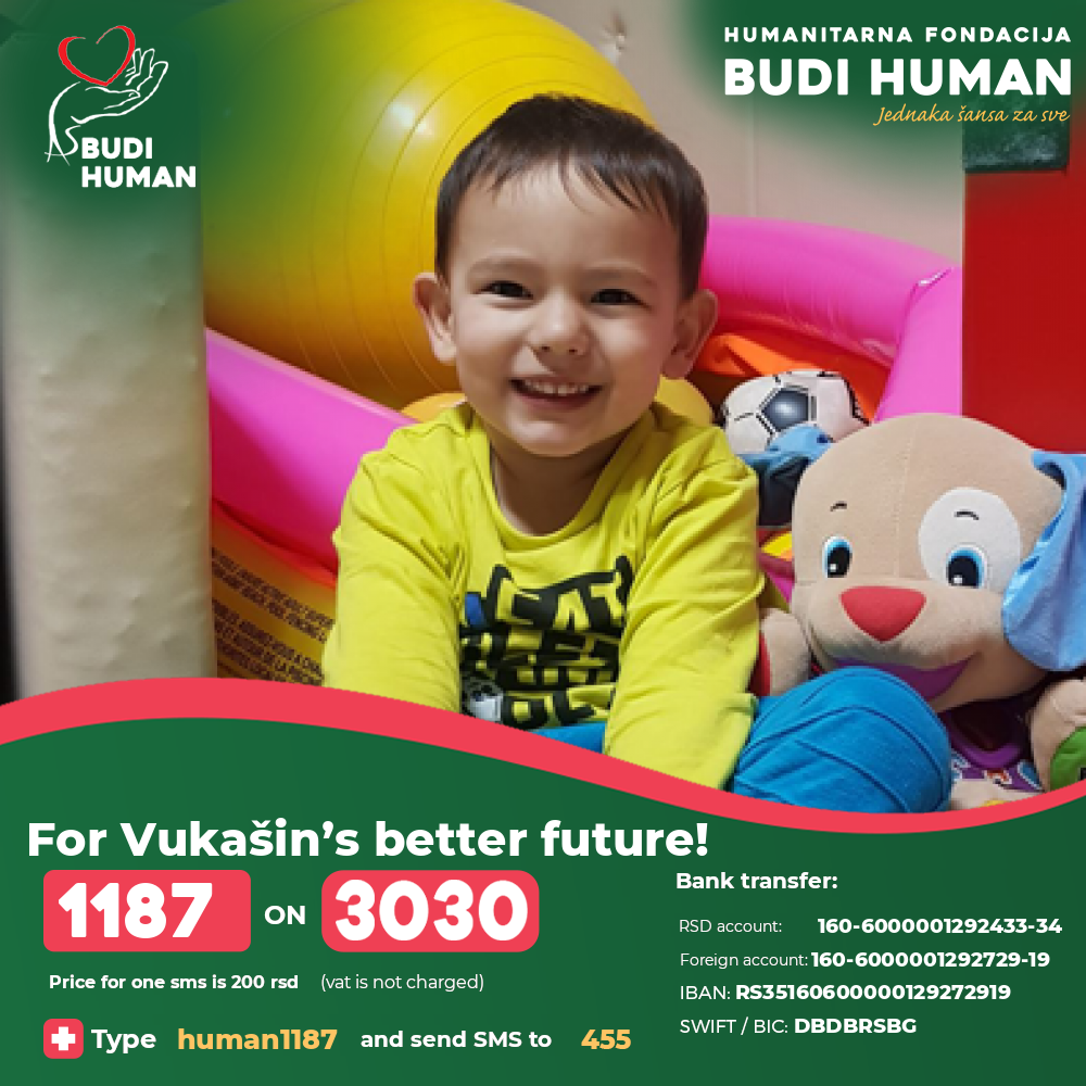 At the age of less than three, Vukašin was diagnosed with cerebral palsy. Vukašin is still not able to sit, stand or walk. He is a cheerful and smiling boy who needs all our help in order to progress in treatment.