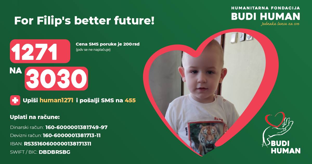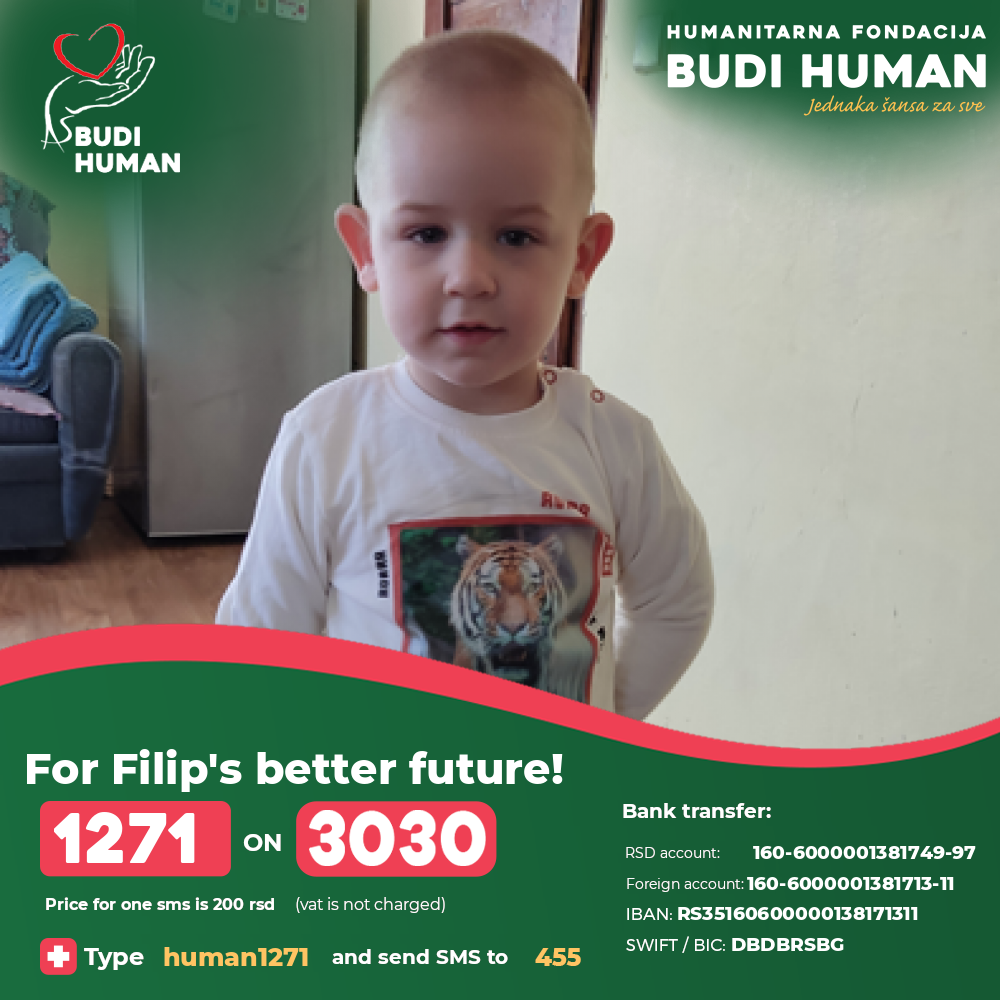 Filip lives in Velika Plana. He was born after a properly maintained and controlled pregnancy.