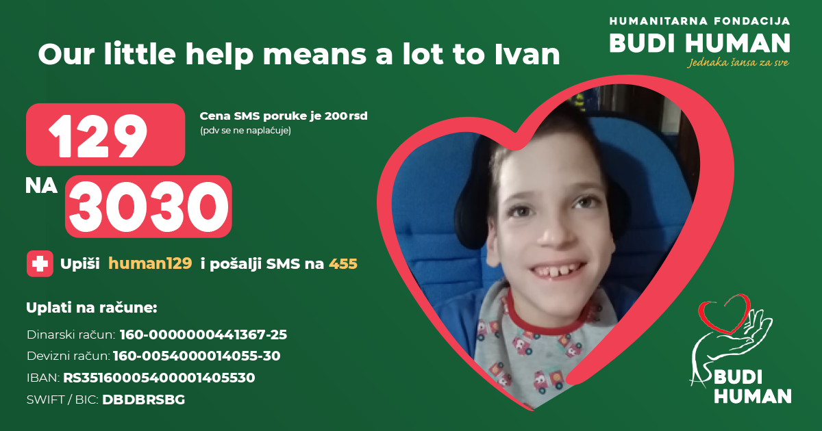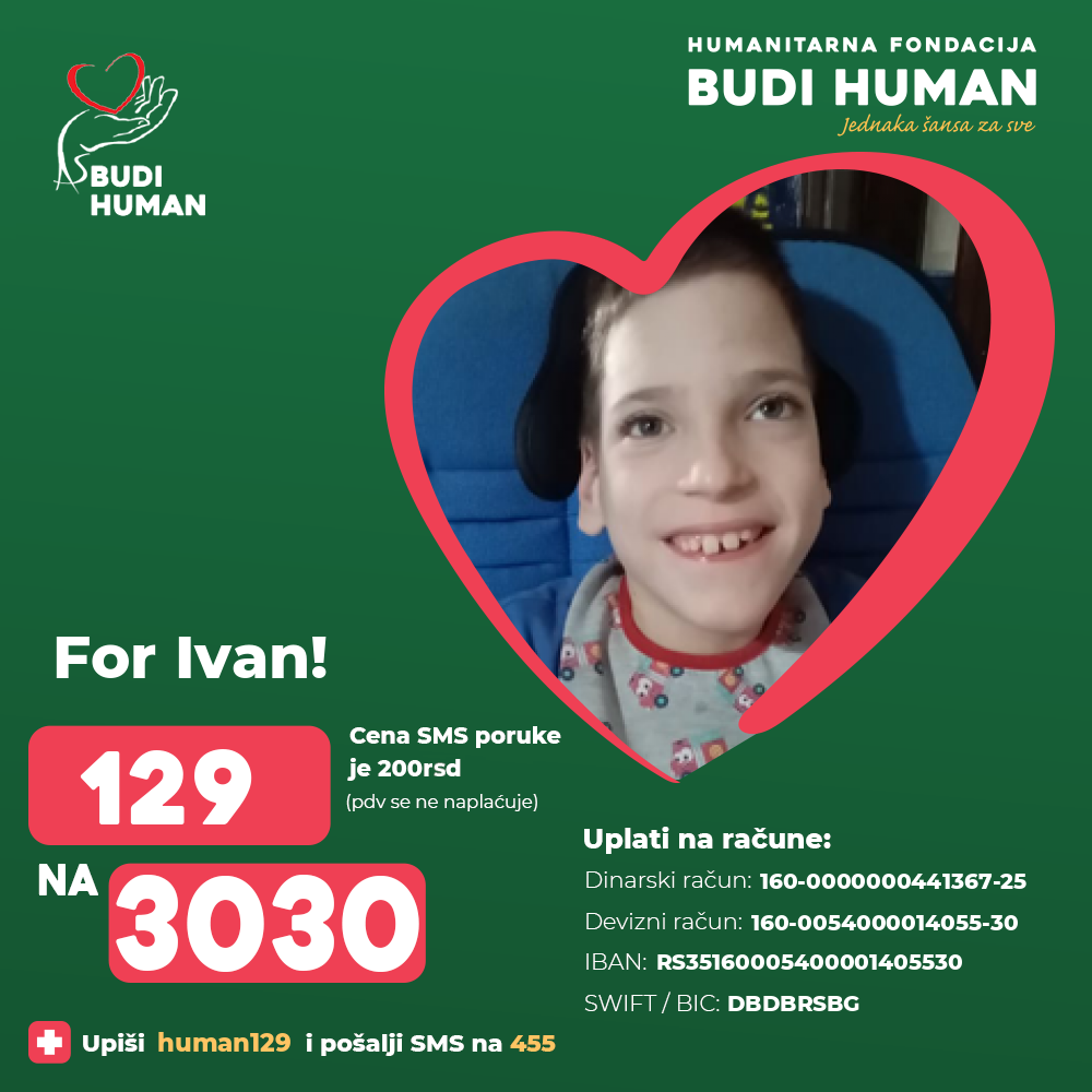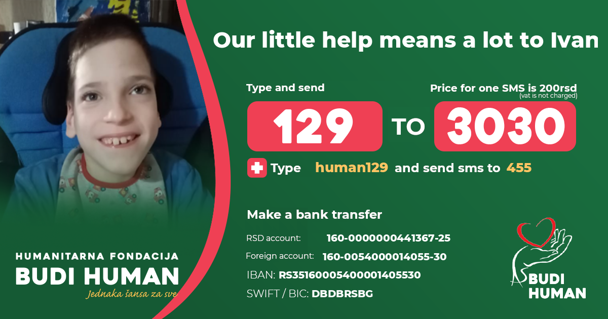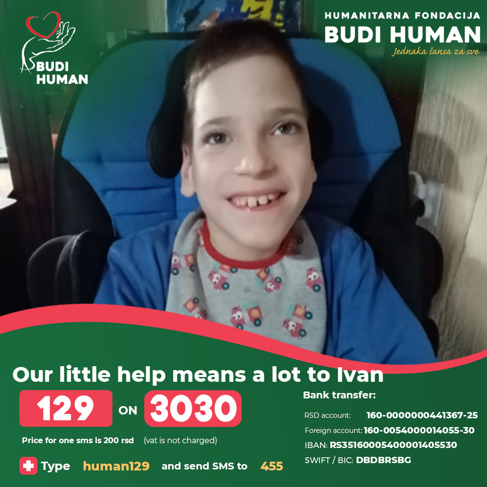 Ivan and his twin brothers Filip and Vanja were prematurely born babies. Vanja lost his life battle, and Philip is a healthy and happy child. As a result of brain bleeding, Ivan was diagnosed with cerebral palsy and hydrocephalus too.