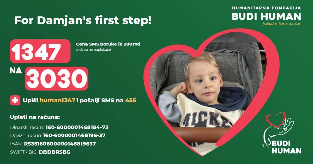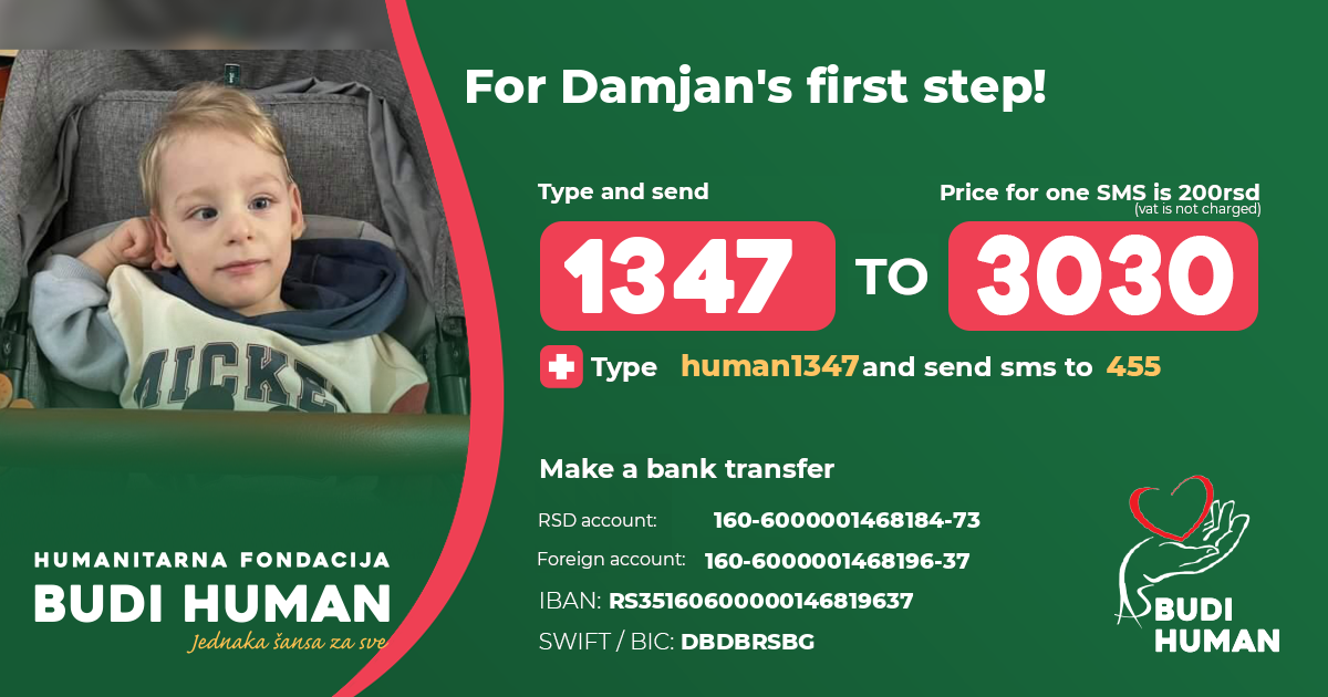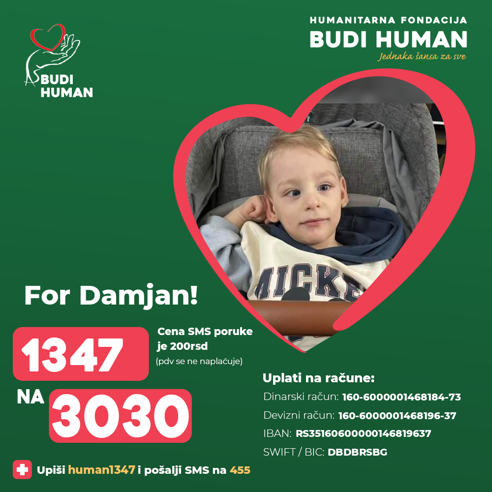 Regardless of everything he faces, Damjan is a cheerful and smiling boy who shows every day what a strong fighter he is. There is progress for the better, but not enough because he needs continuous treatment, which his parents are unable to provide, so they are asking all humane people to help them as much as they can.