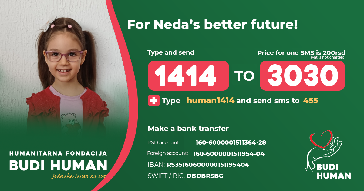In a year and a half of intensive therapy, Neda has made great progress, so she needs donations so that she can continue her treatment.