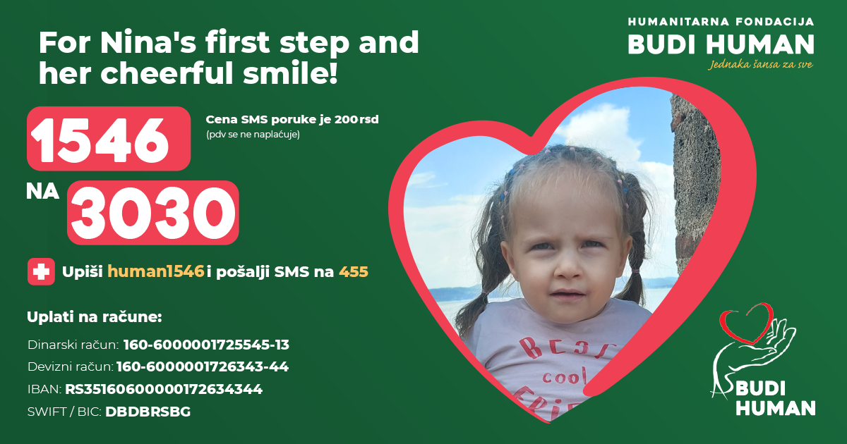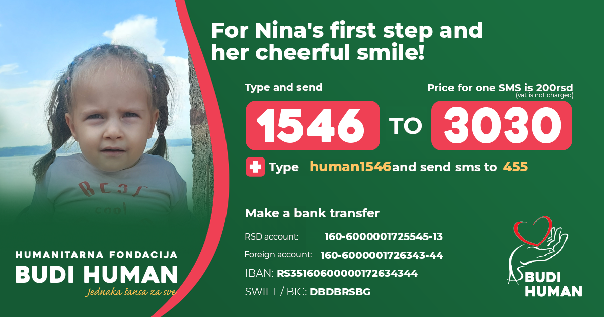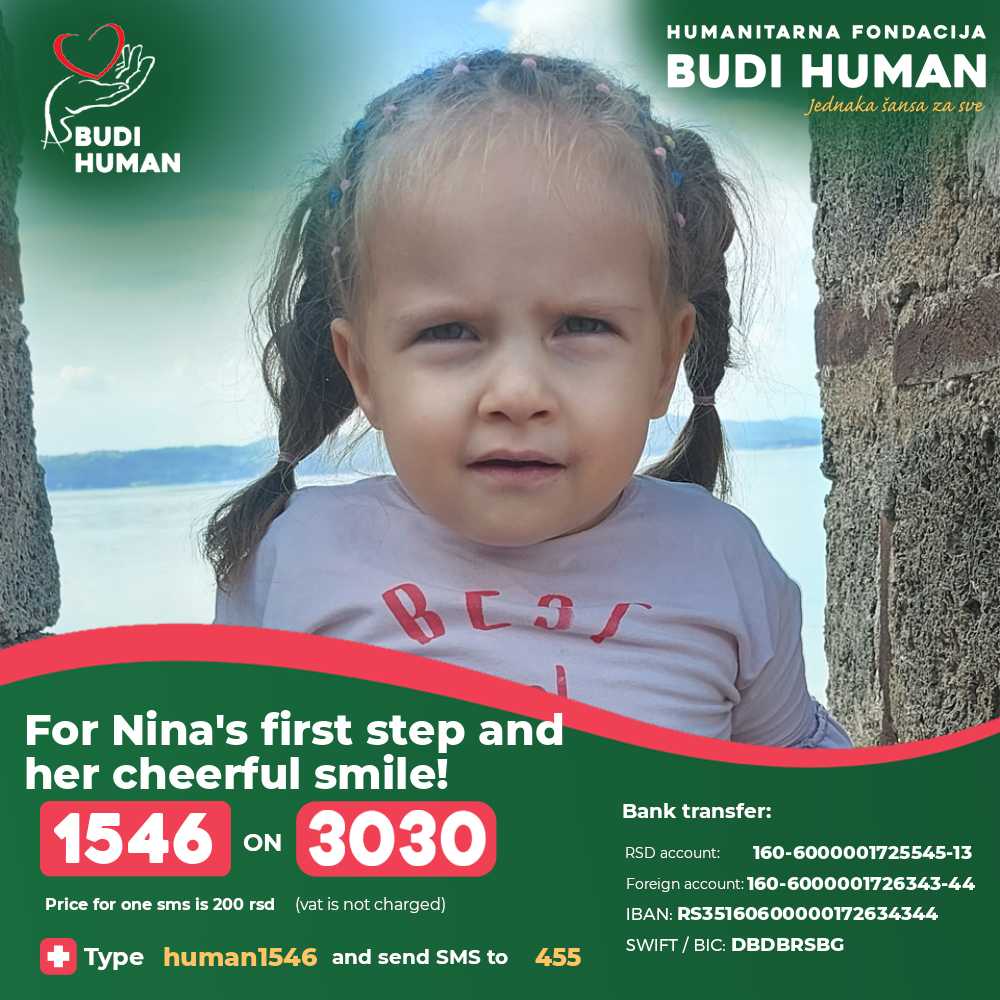 For Nina's first step and her cheerful smile! Let's be humane!
