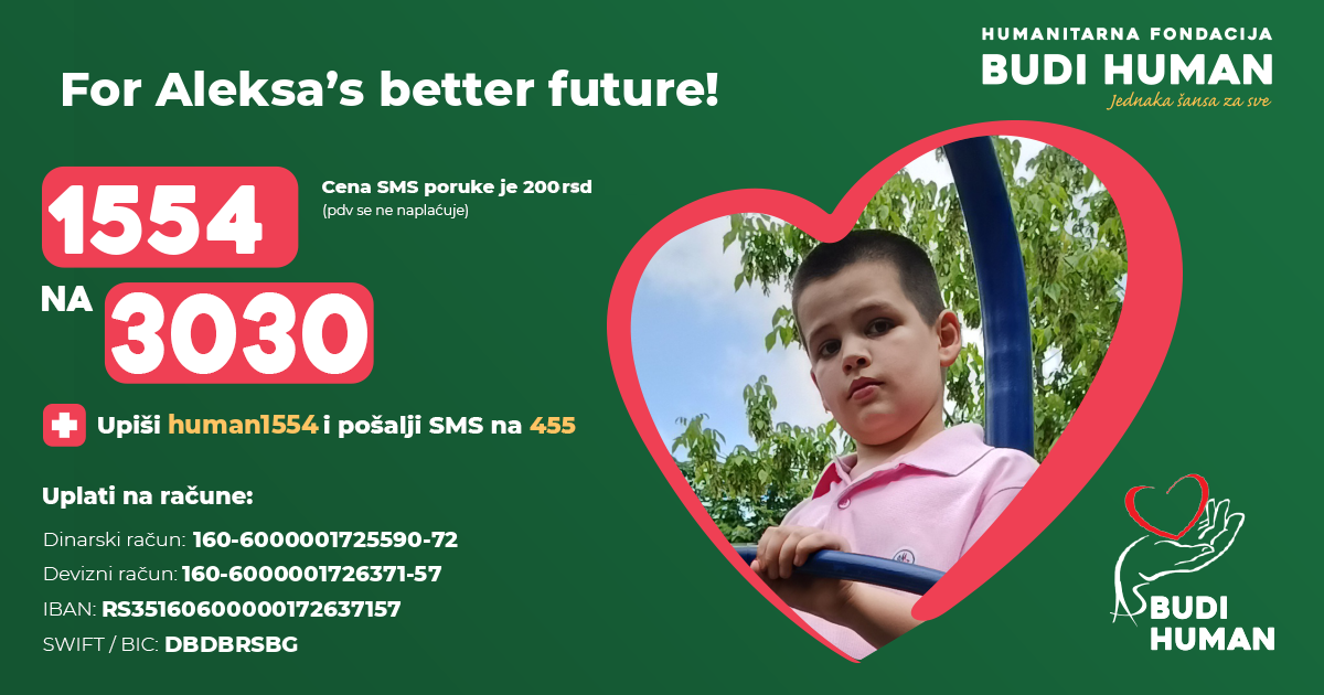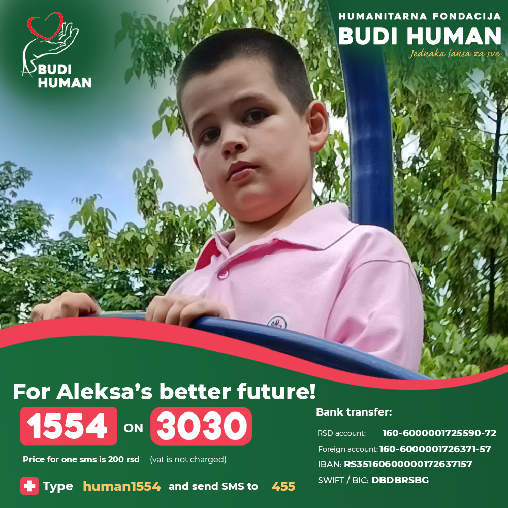 For Aleksa’s better future! Let's be humane!