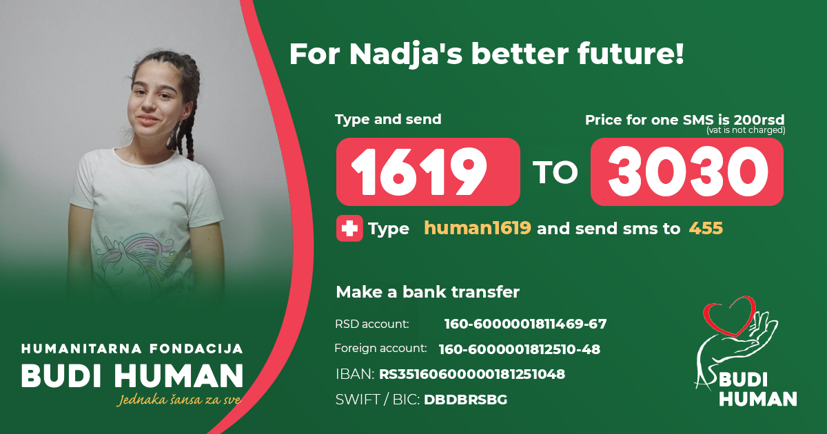 For Nadja's better future! Let's be humane!