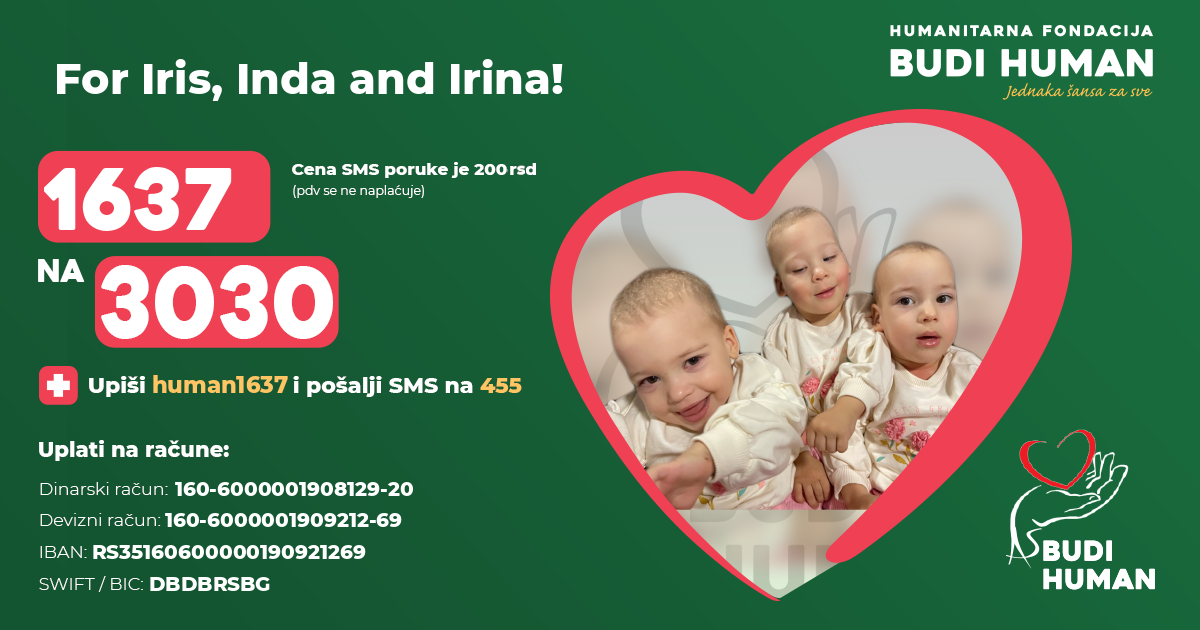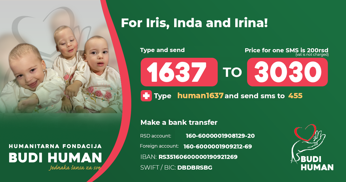 raises funds for Iris, Inda and Irina Gaćeša (2022).