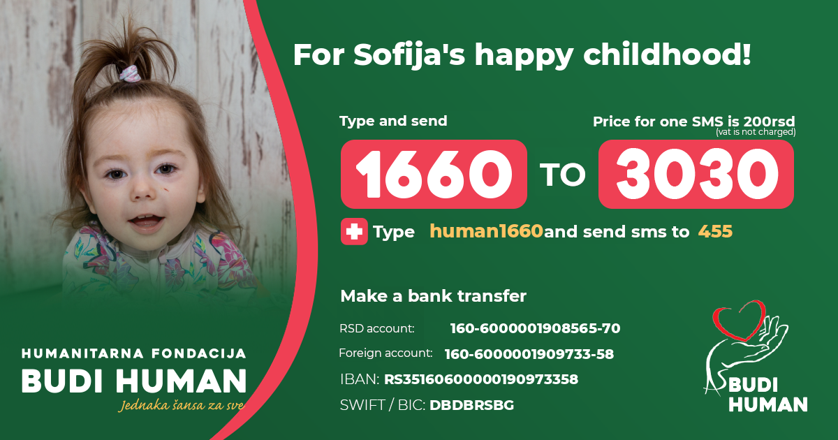 For Sofija's happy childhood! Let's be humane!