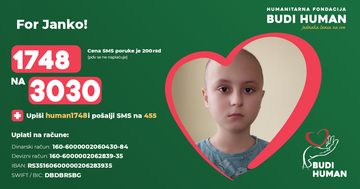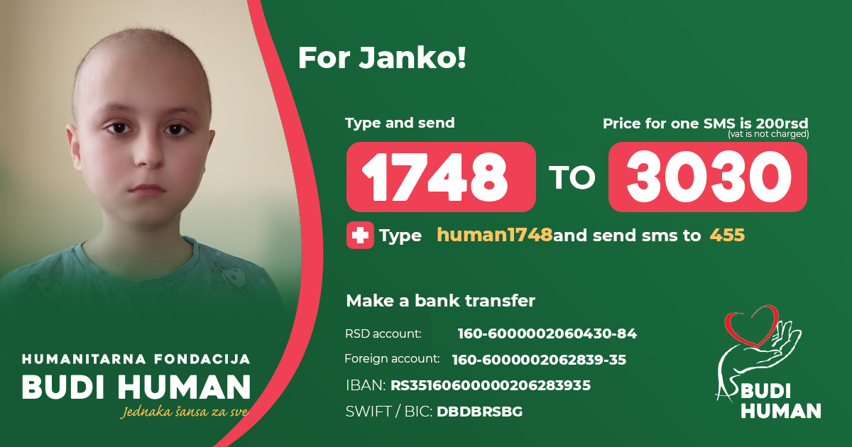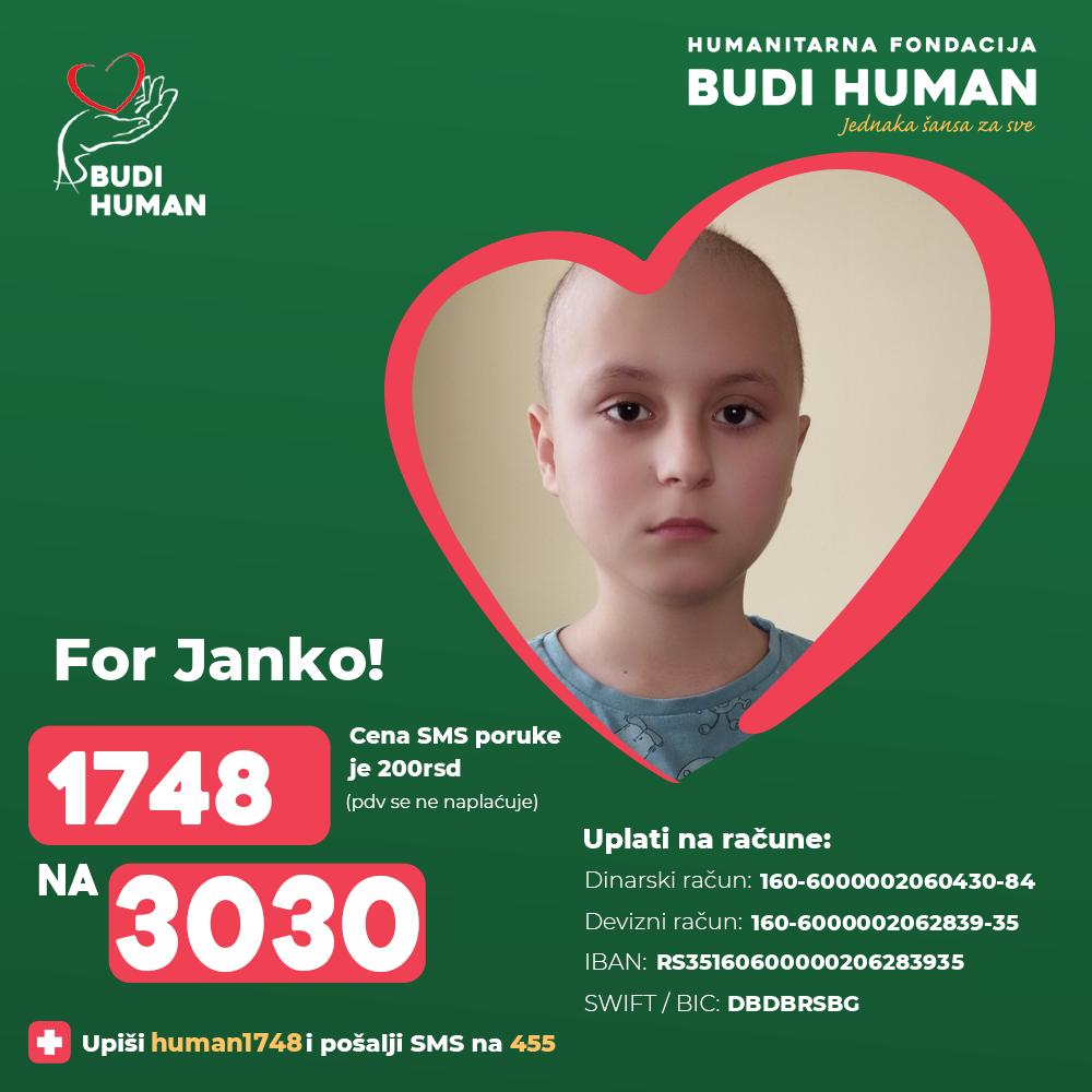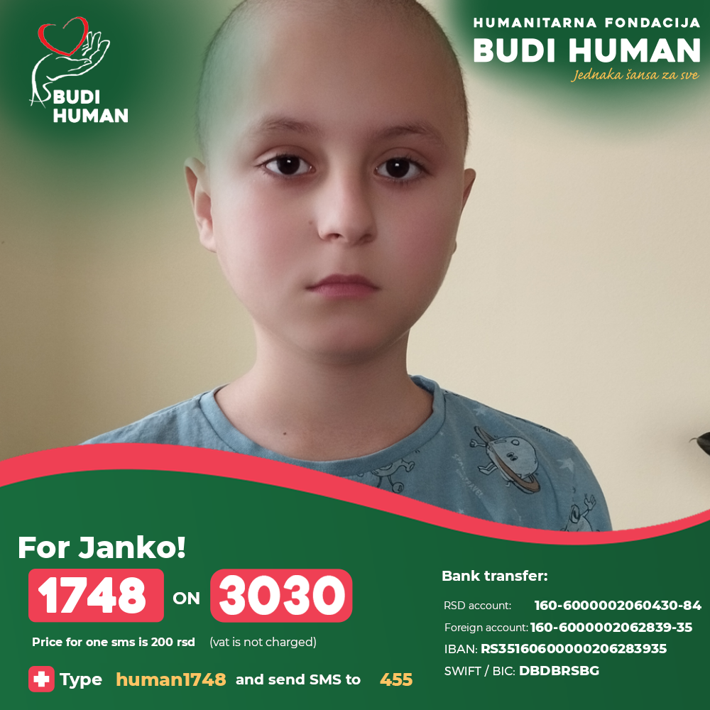 To continue Janko's treatment abroad, significant financial resources are necessary, which his family is unable to provide independently, so the help of all generous people’s donations is needed.