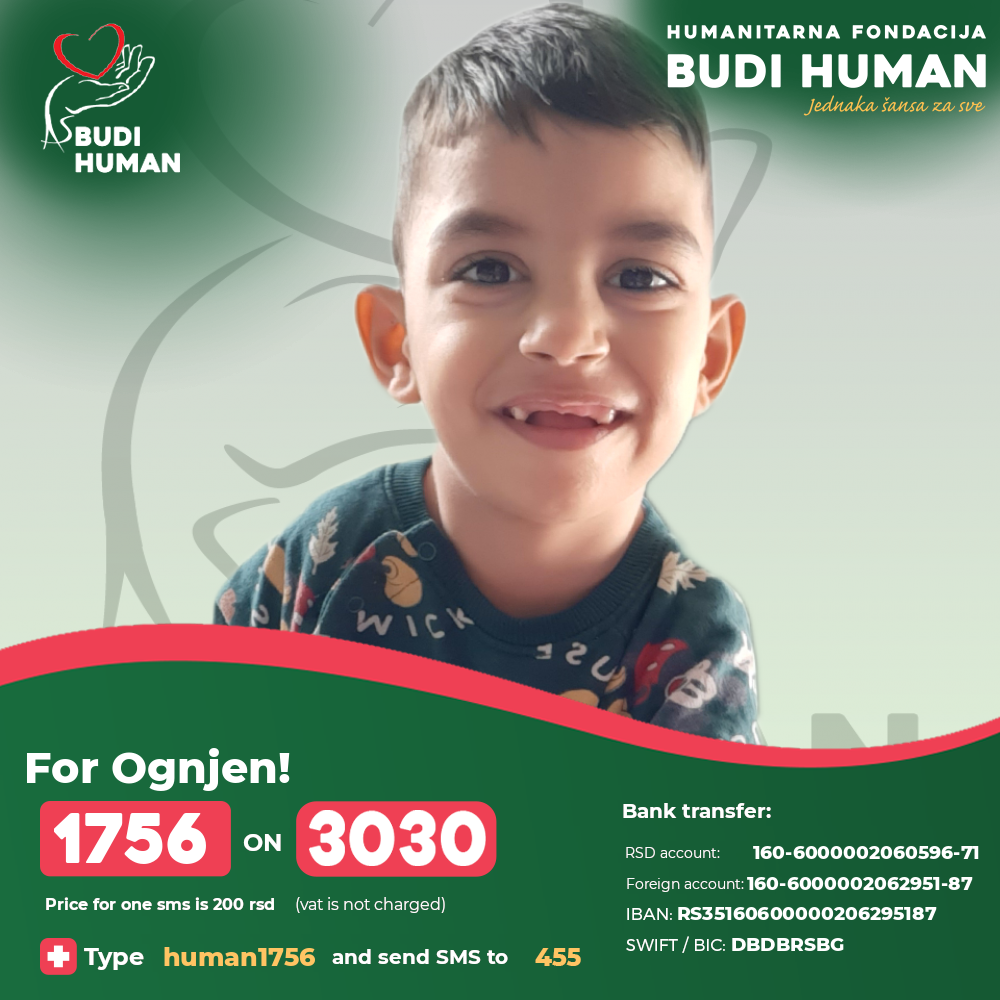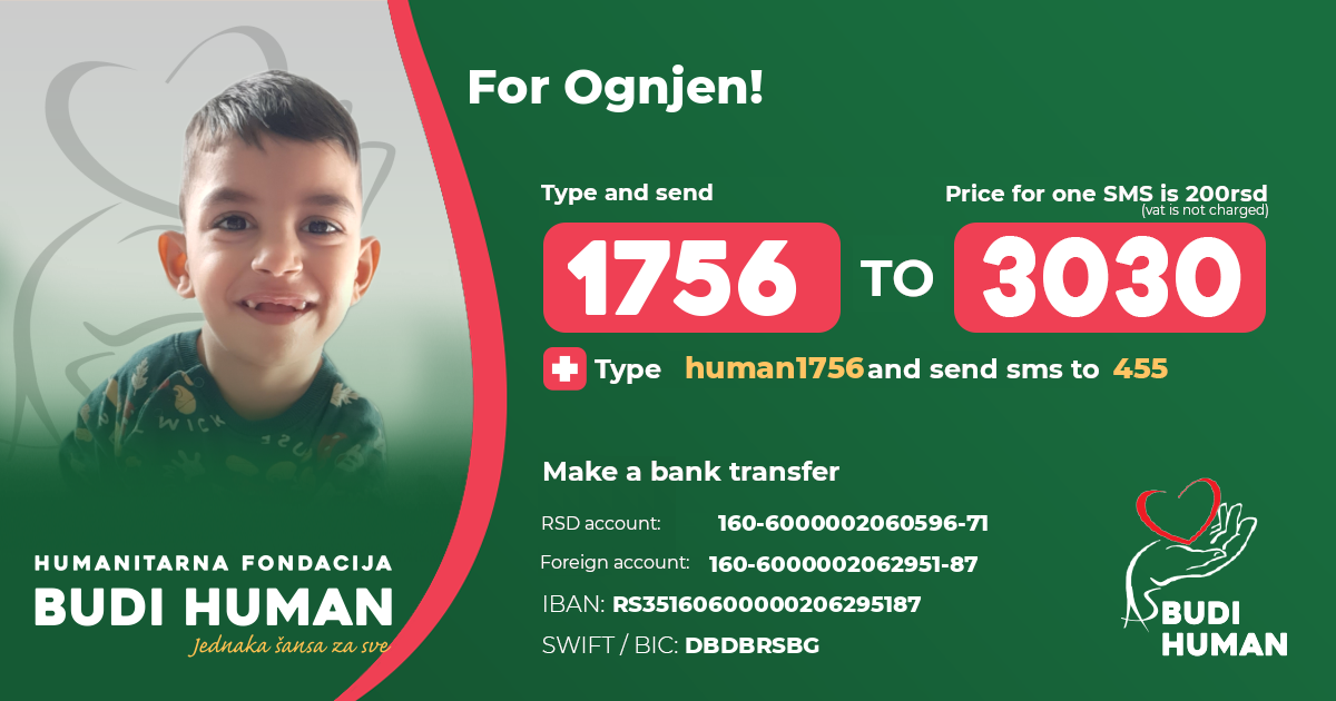 Considering the extremely high costs of continued treatment, his family appeals to all humane people to help with their donations so that Ognjen can take his first steps.
