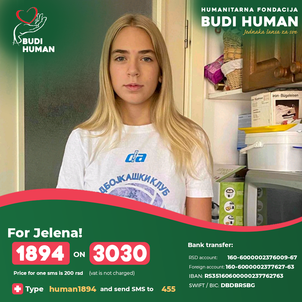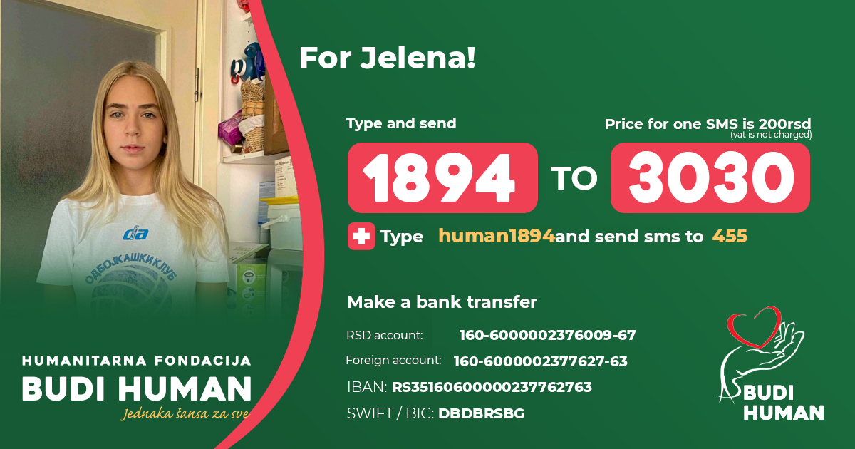 In October 2025, due to difficulty with walking, passivity, reduced communication and dizziness that appeared in the previous two months, Jelena was admitted to University’s Clinic Center of Serbia neurosurgery department, where she had biopsy after that she was a diagnosed with a malignant tumor that crossed the borders of the brain (C71.8 Neoplasma malignum cerebri, limited transients) .
