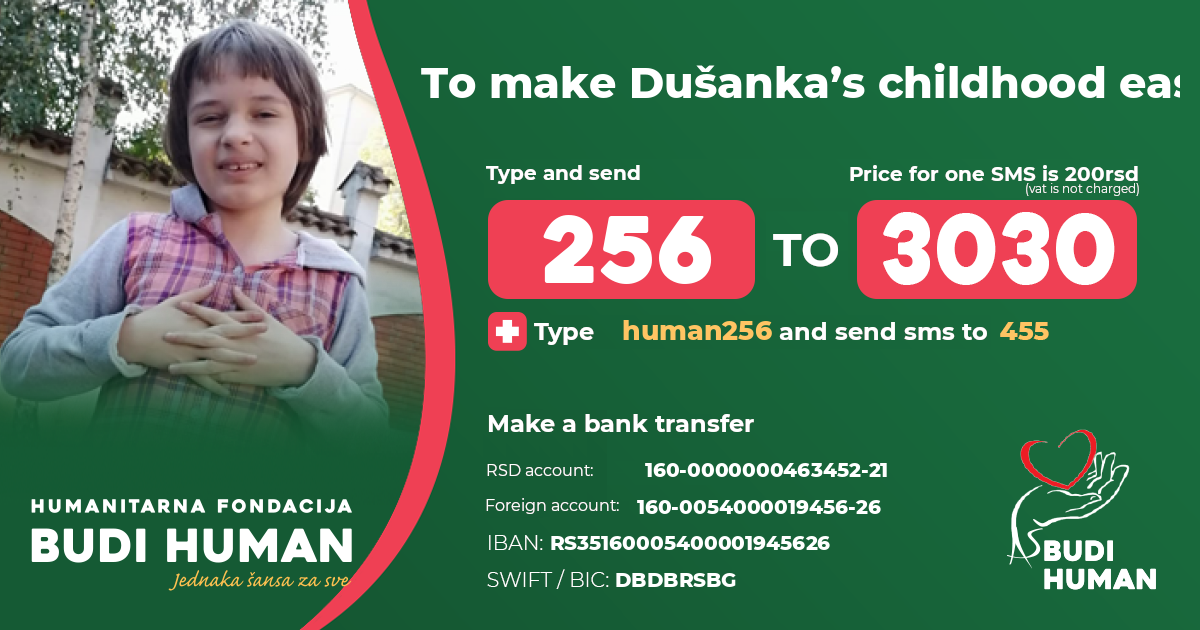 To make Dušanka’s childhood easier! Let's be humane!