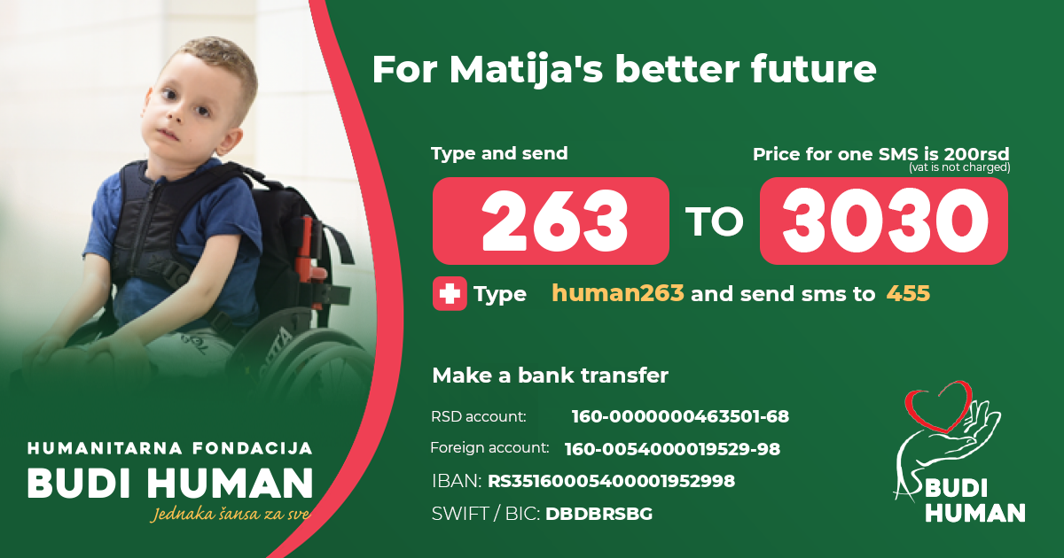 For Matija's better future! Let's be humane!