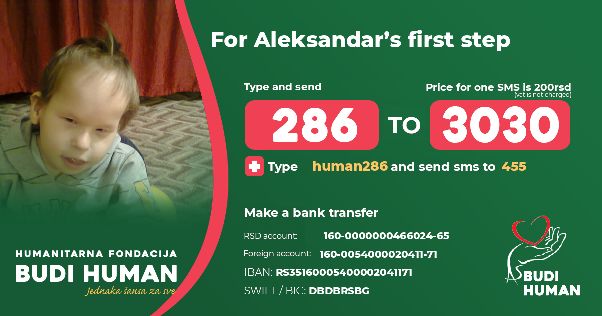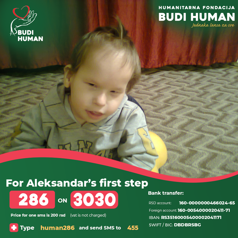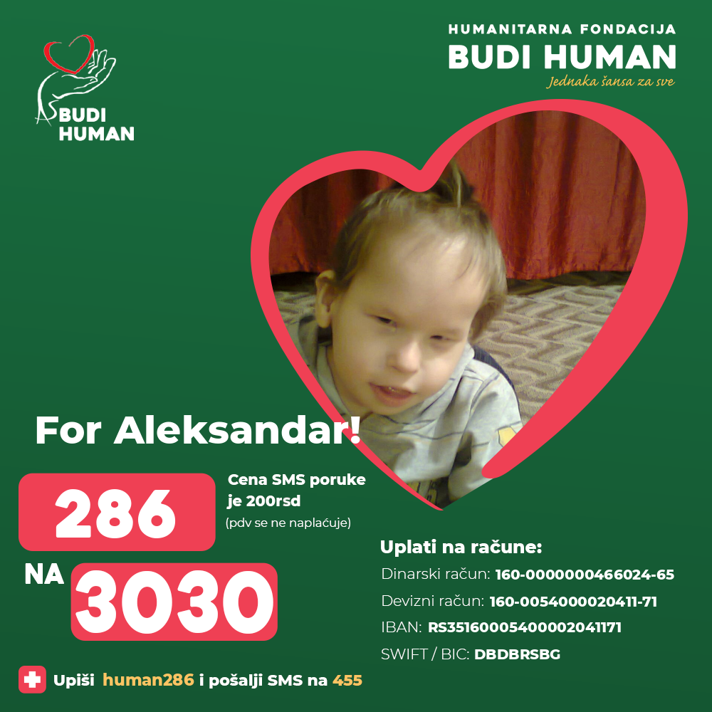 Aleksandar was born 16 days before the term. At birth, doctors tried to save his mother, and little Alexandra was immediately sent to another hospital due to complications. He was without oxygen and only after 20 days he came to his mother's arms.