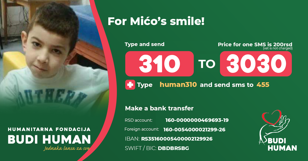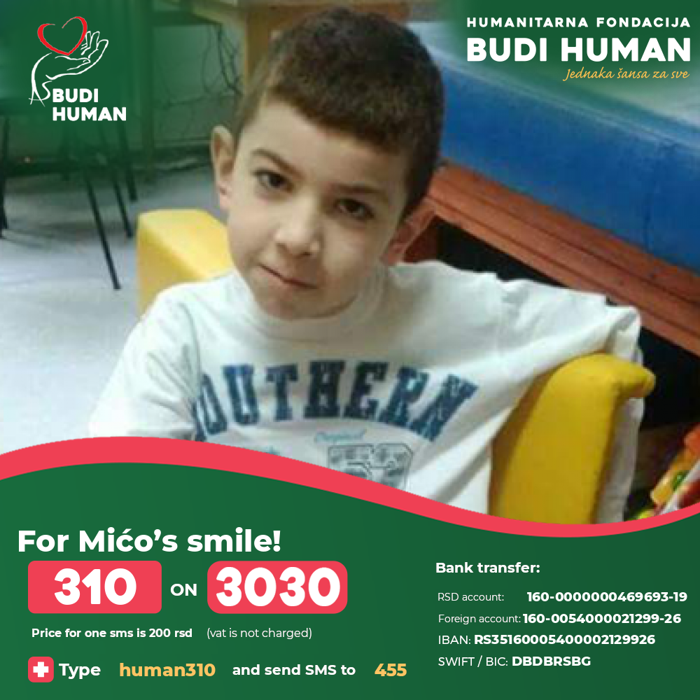 Mićo's parents found out that he suffered from cerebral palsy seven months after his birth. They noticed that something was wrong with him, that he did not progress like the other children.
