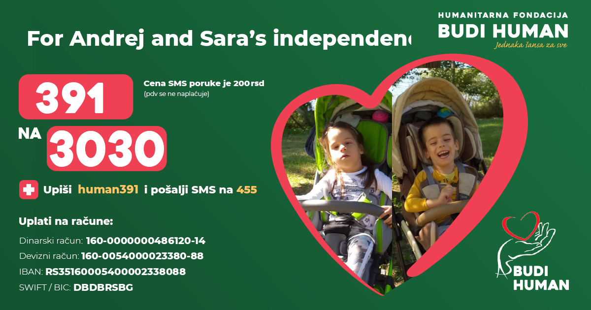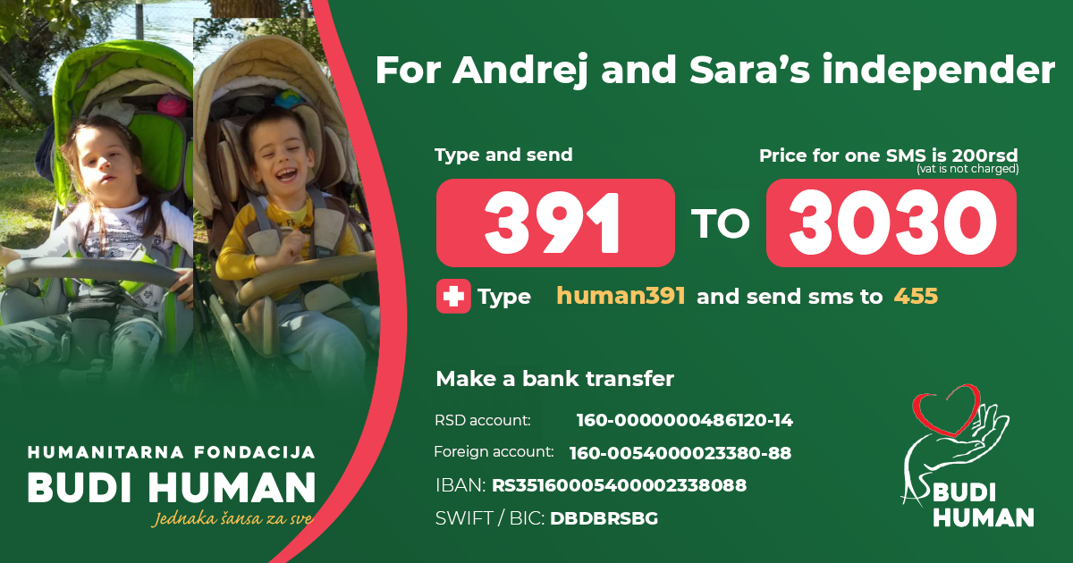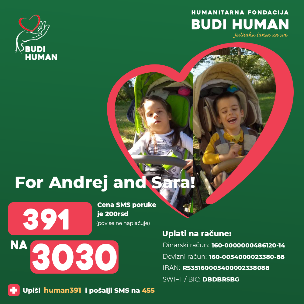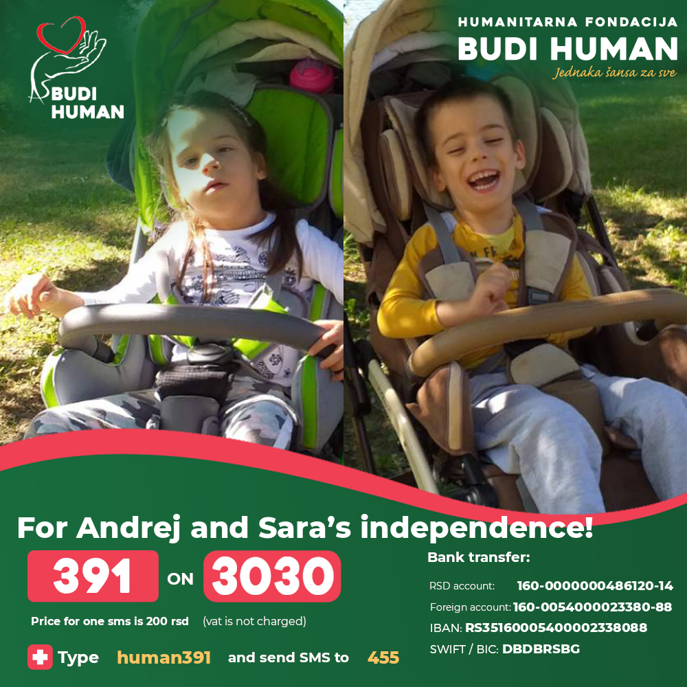 All the efforts of their parents and the therapists  are put to make Andrej and Sara as independent as possible. For all these treatements they need financial help from all the good people.