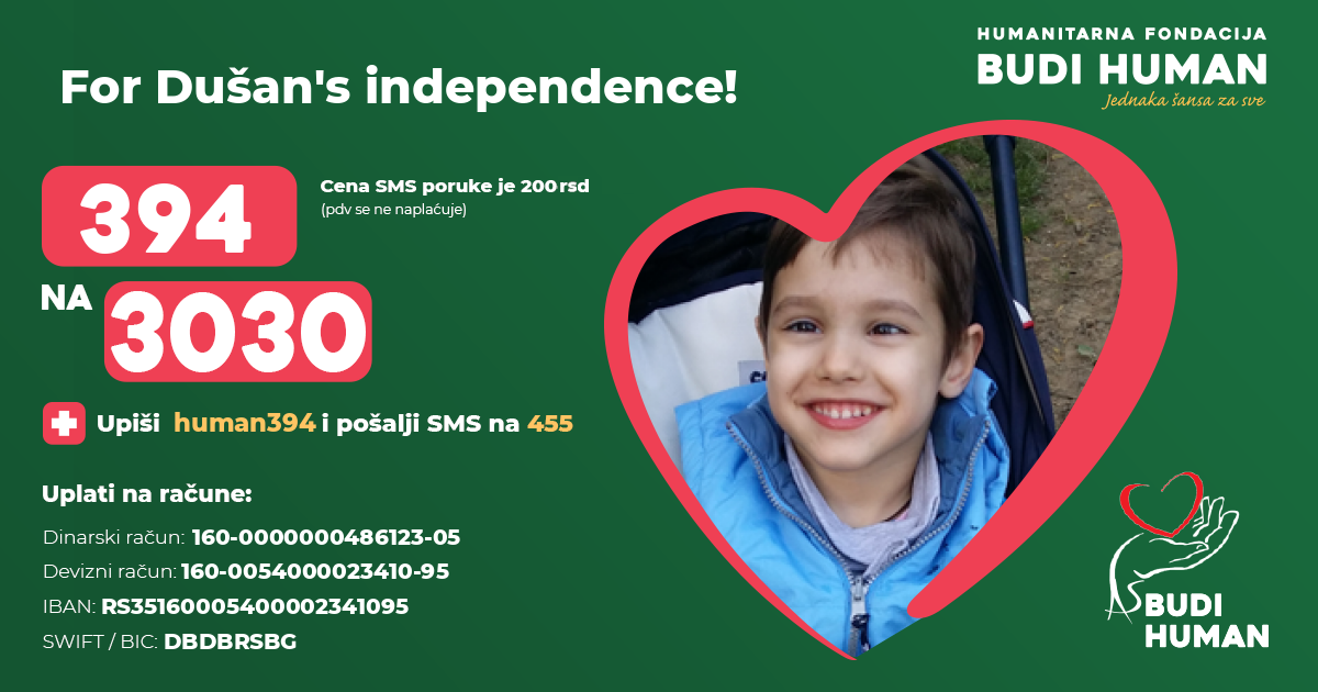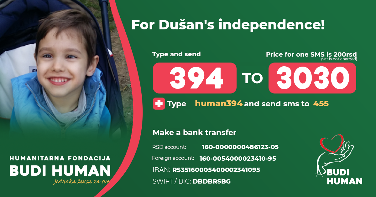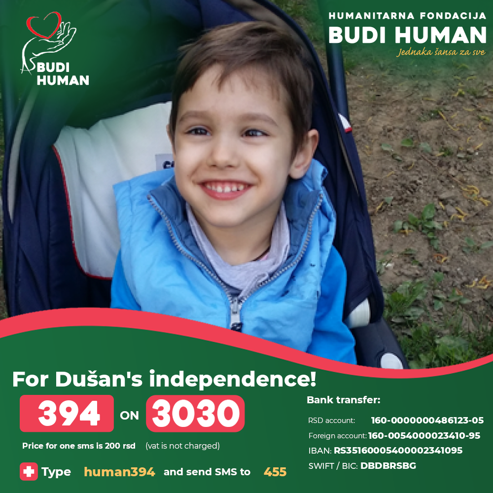 Let’s allow Dušan to go to the surgery and necessary rehabilitation, hypotherapy, hydrotherapy, speech therapist and all other aids to achieve further progress and soon learn to sit, stand, walk and become as independent as possible.