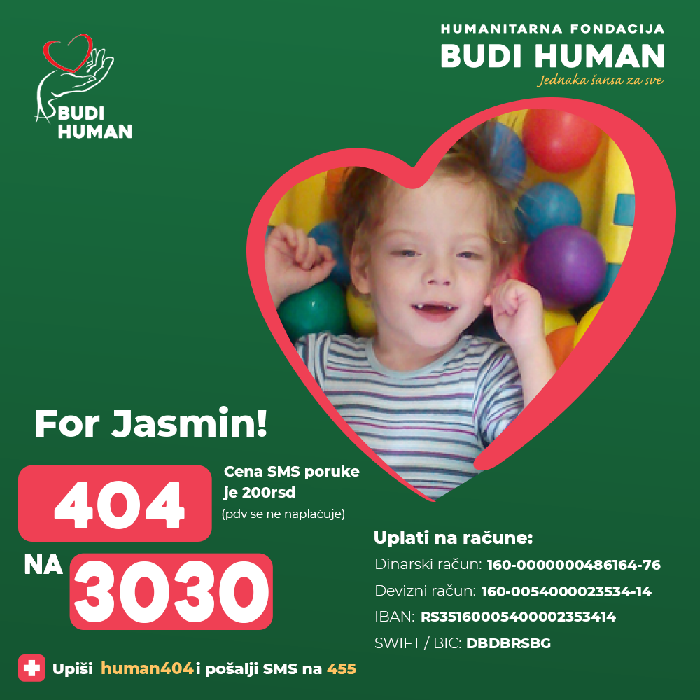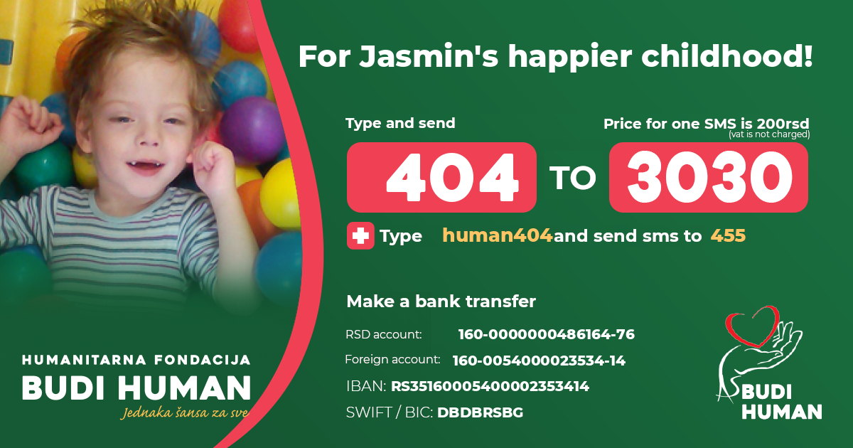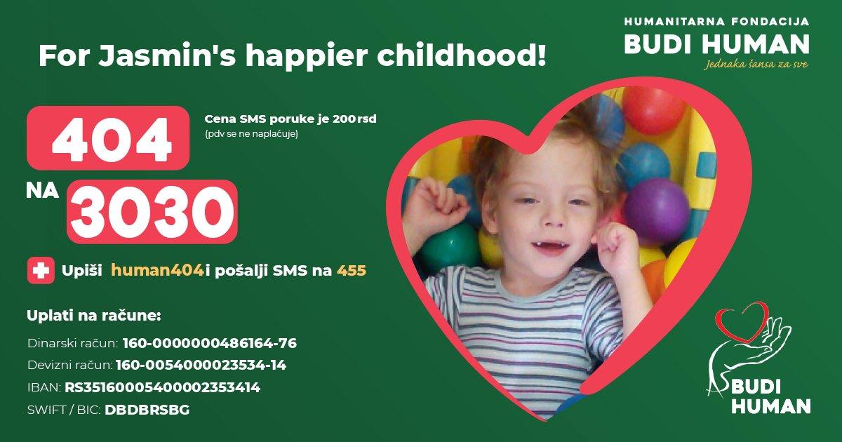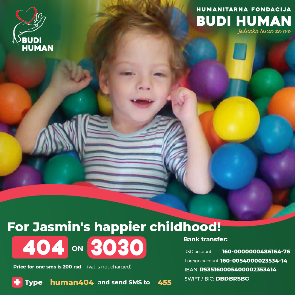 Let’s provide Jasmin with a proper therapy so that he can use all his potentials and to minimize the level of disability.