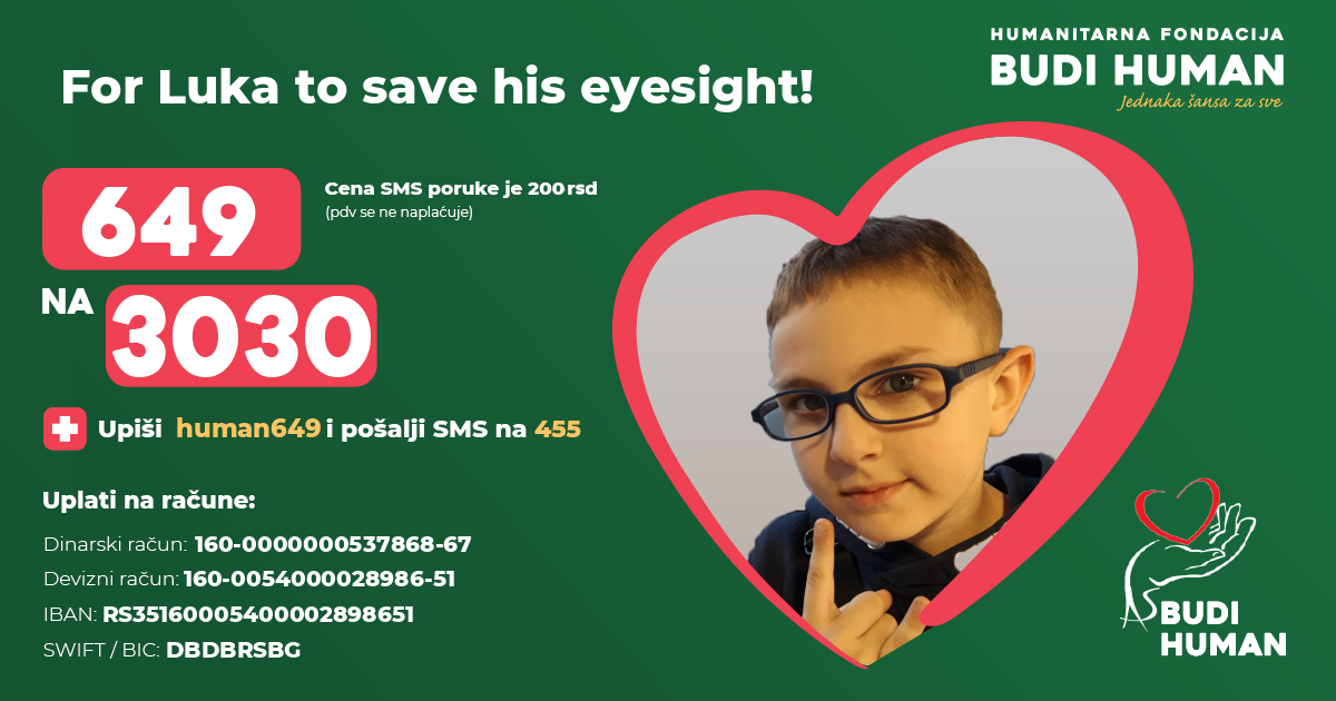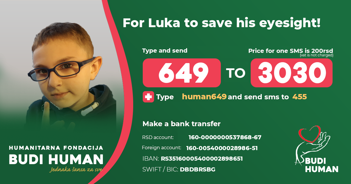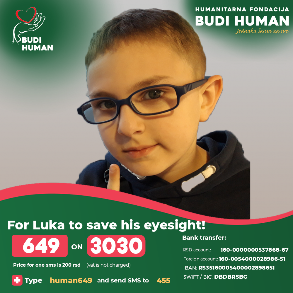 Let’s allow Luka to go abroad to the necessary operations that would prevent the deterioration of his eyesight. He had an operation but it needs to be repeated in six months again.