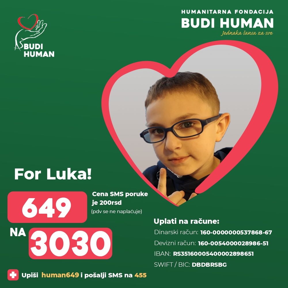 In December 2017, Luka began to wear glasses that they thought had a wrong diopter because they were not helpful in everyday life. After a year, Luka was finally diagnosed with dystrophy of the retina, which, unfortunately, meant that there was no therapy or surgery in the country, and that his eyesight will deteriorate further and ultimately lead to blindness.