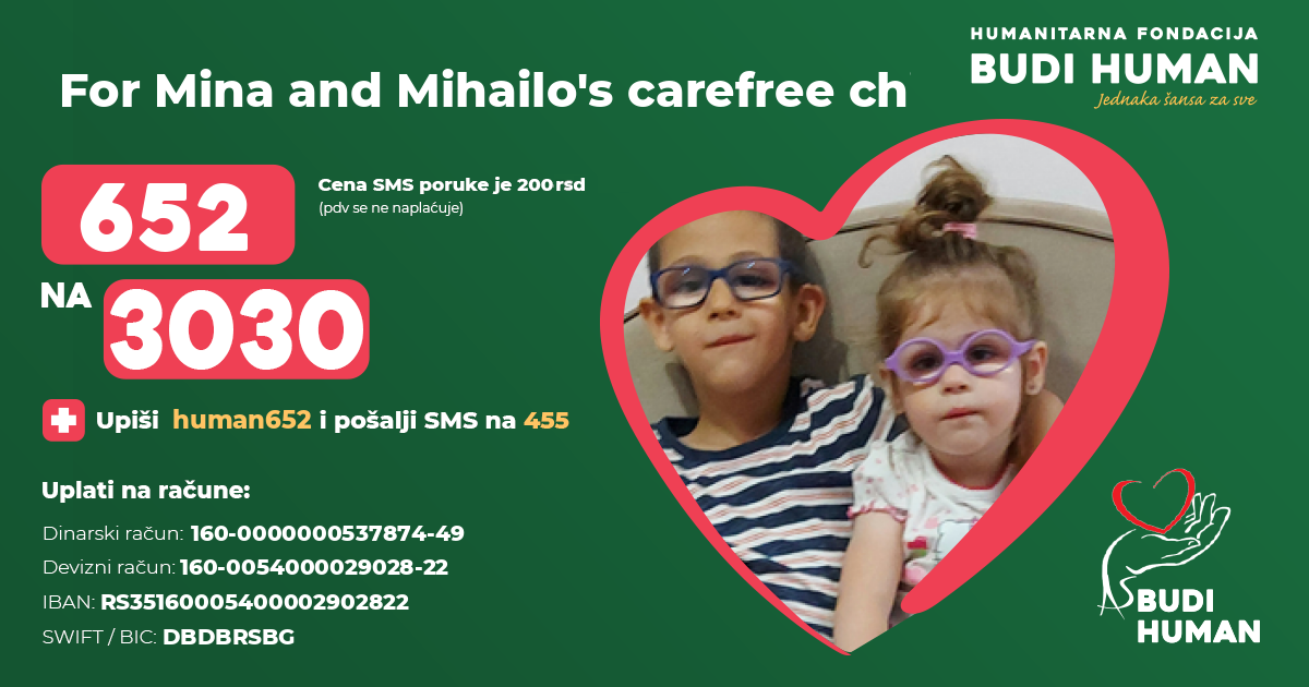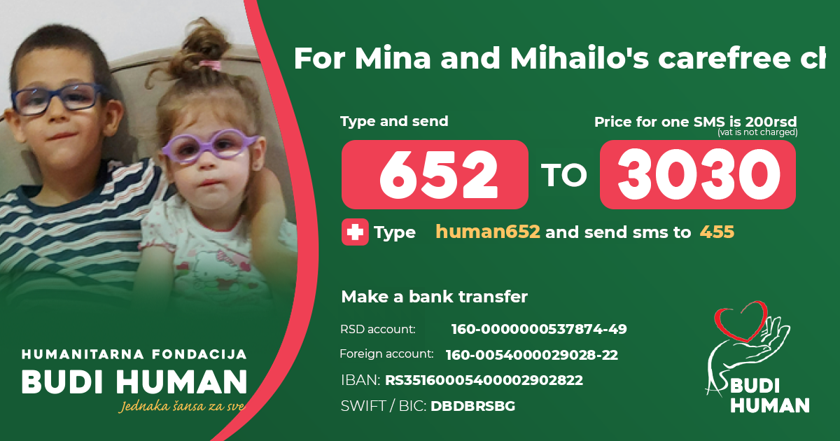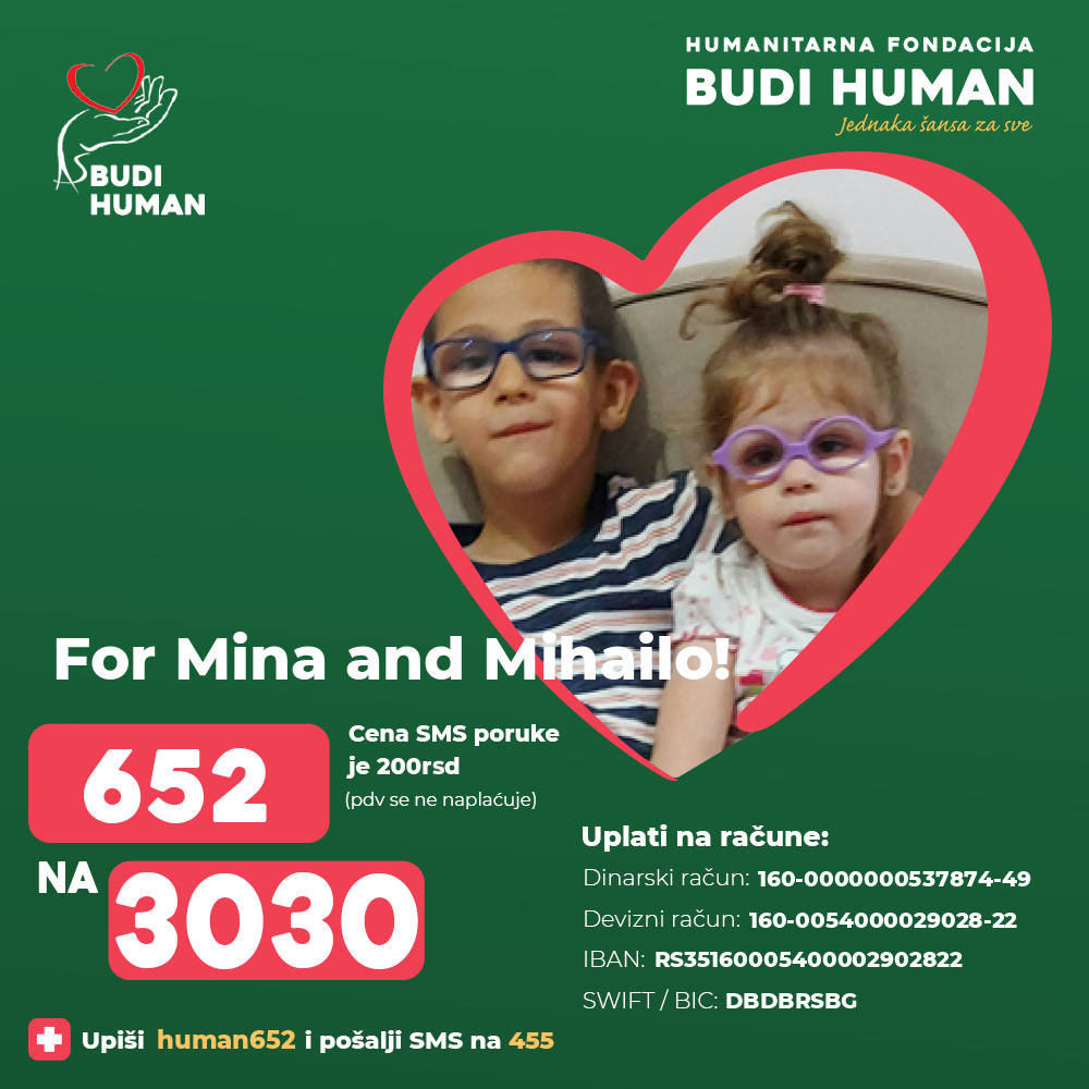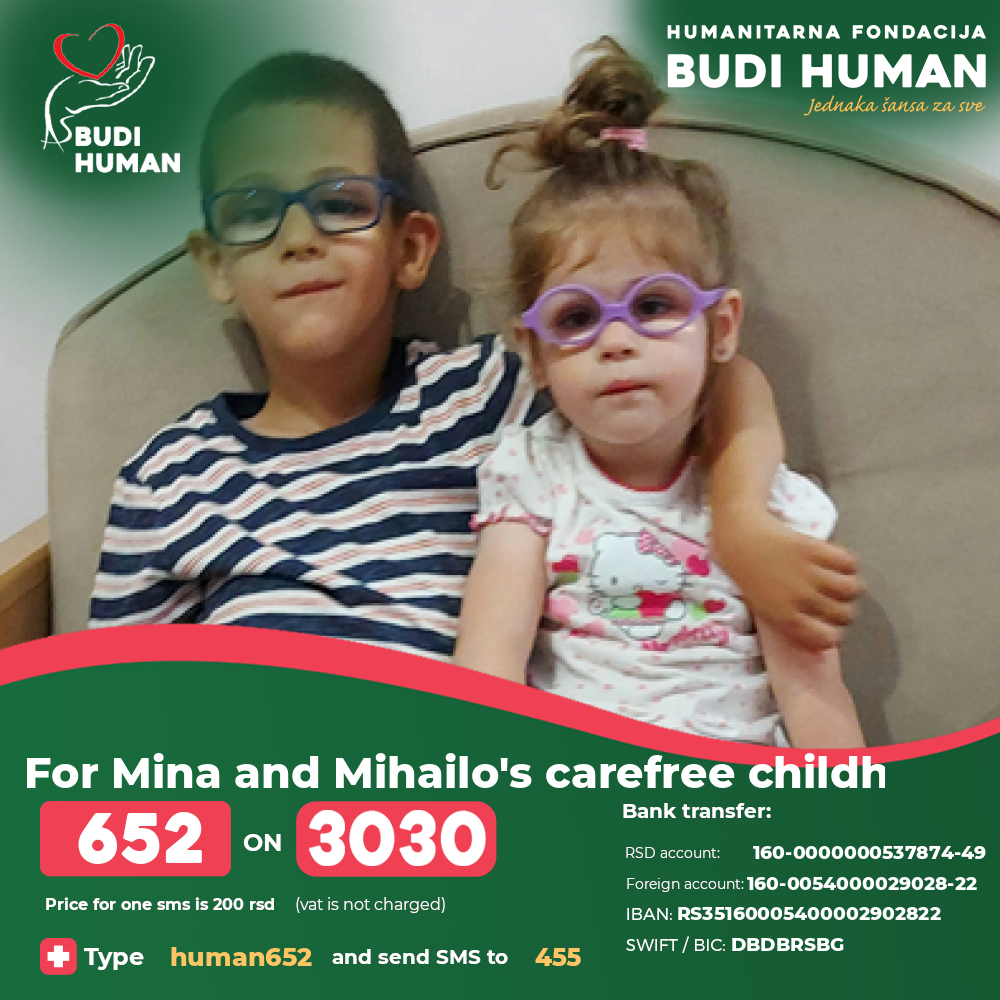 The family asks all good-willed people to help in further treatment and to provide Mihailo with  money for sufficient number of therapies, lens and aids needed for his development and normal life.