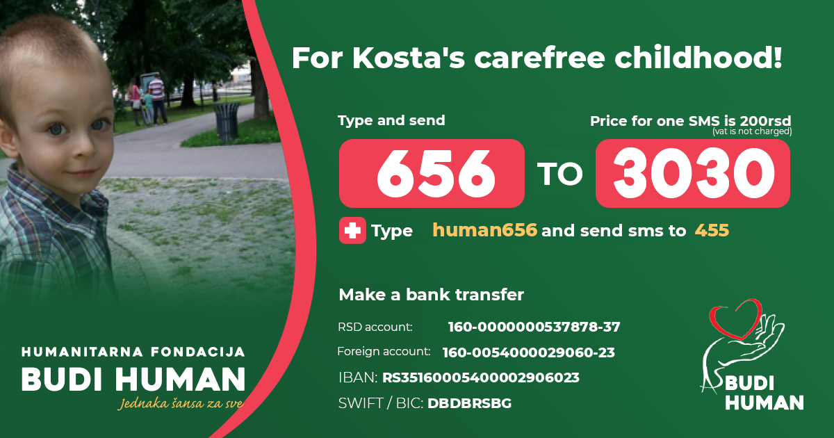 For Kosta's carefree childhood! Let's be humane!
