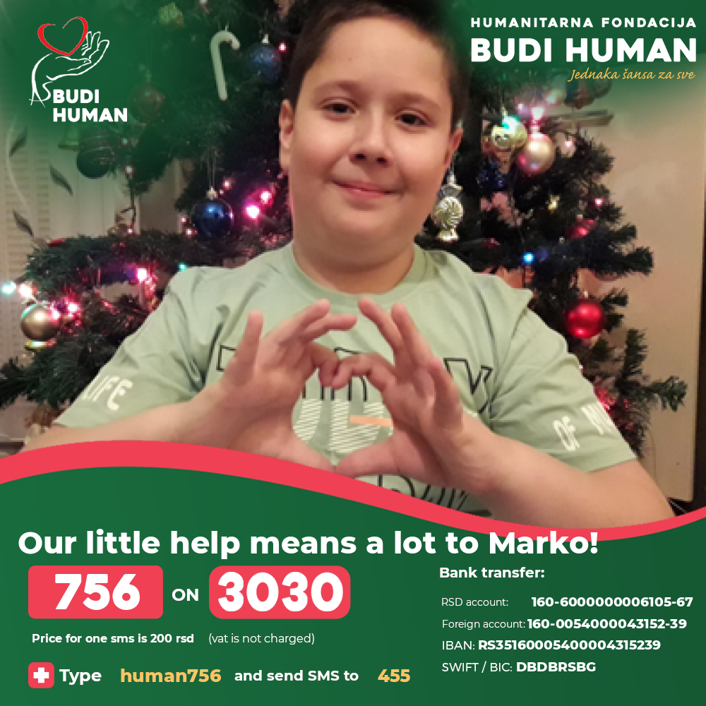 Otherwise, Marko has a very low immunity, so he is very often ill due to the tendency for infections, and due to his condition he has major problems with breathing.