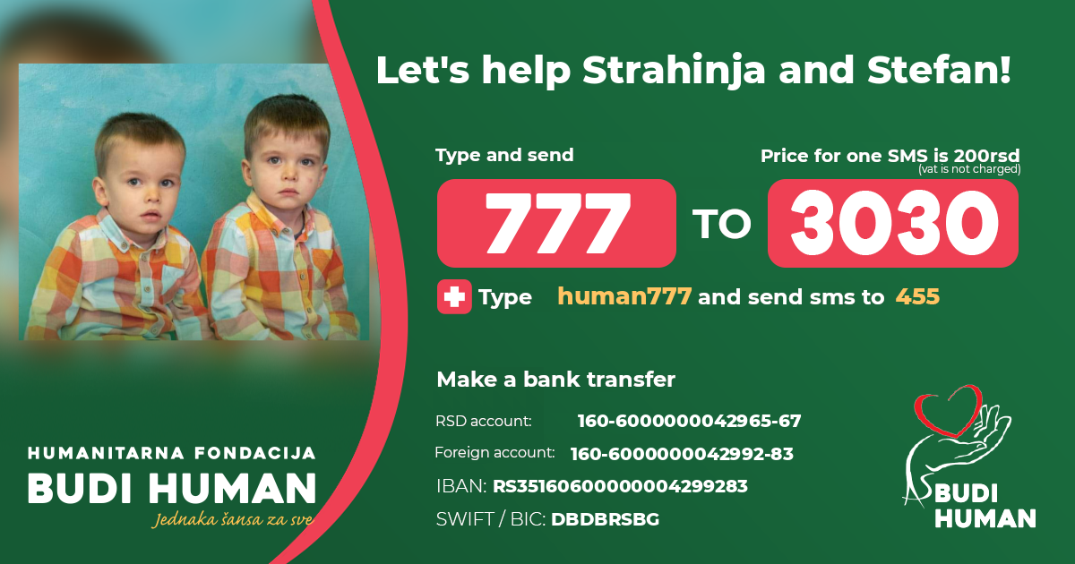 raises funds for Strahinja i Stefan Jovančević (2017).