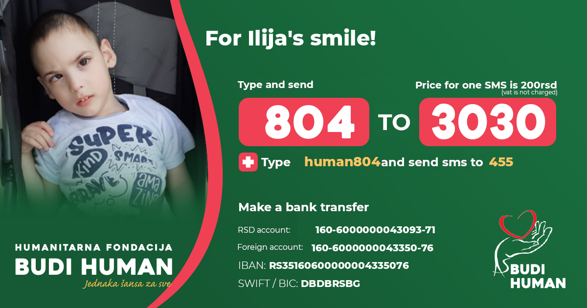 For Ilija's smile! Let's be humane!