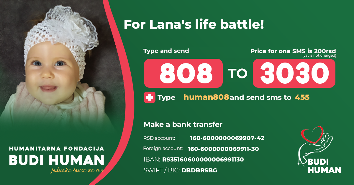 They ask all people with a kind heart to help them raise money together for a cure that will save her from this vicious disease and allow her to play, run and jump with her brother. Let's give Lana a chance for her childhood and all its charms. Let's help her stand firmly on the ground and allow her footsteps to be heard far away.