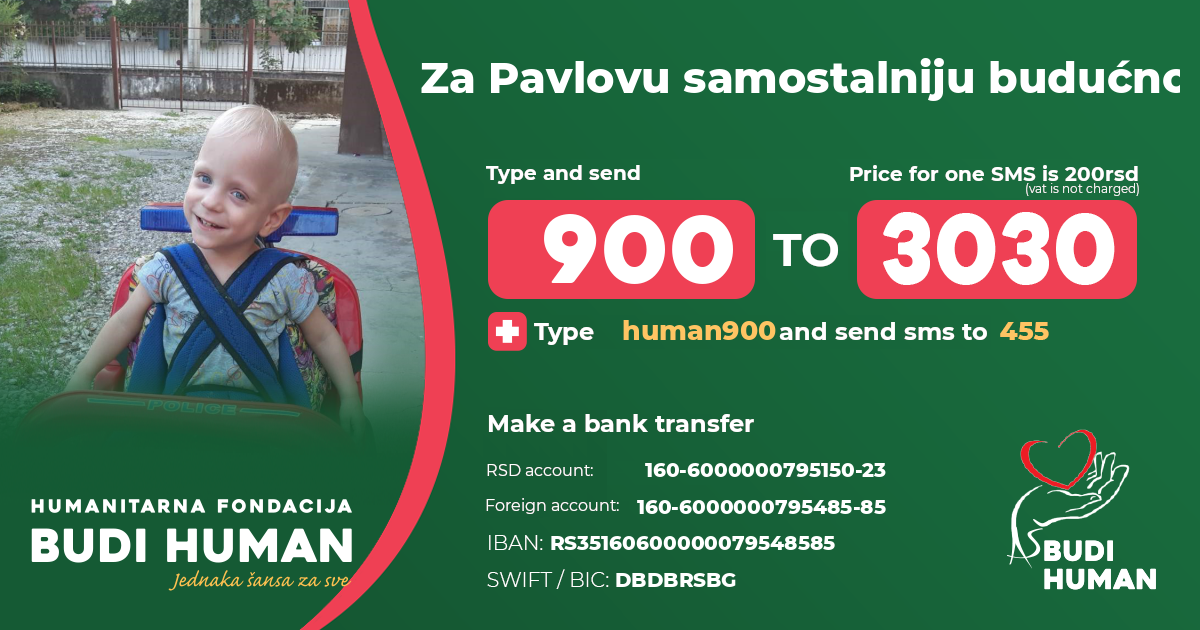 For Pavle's more independent future! Let's be humane!