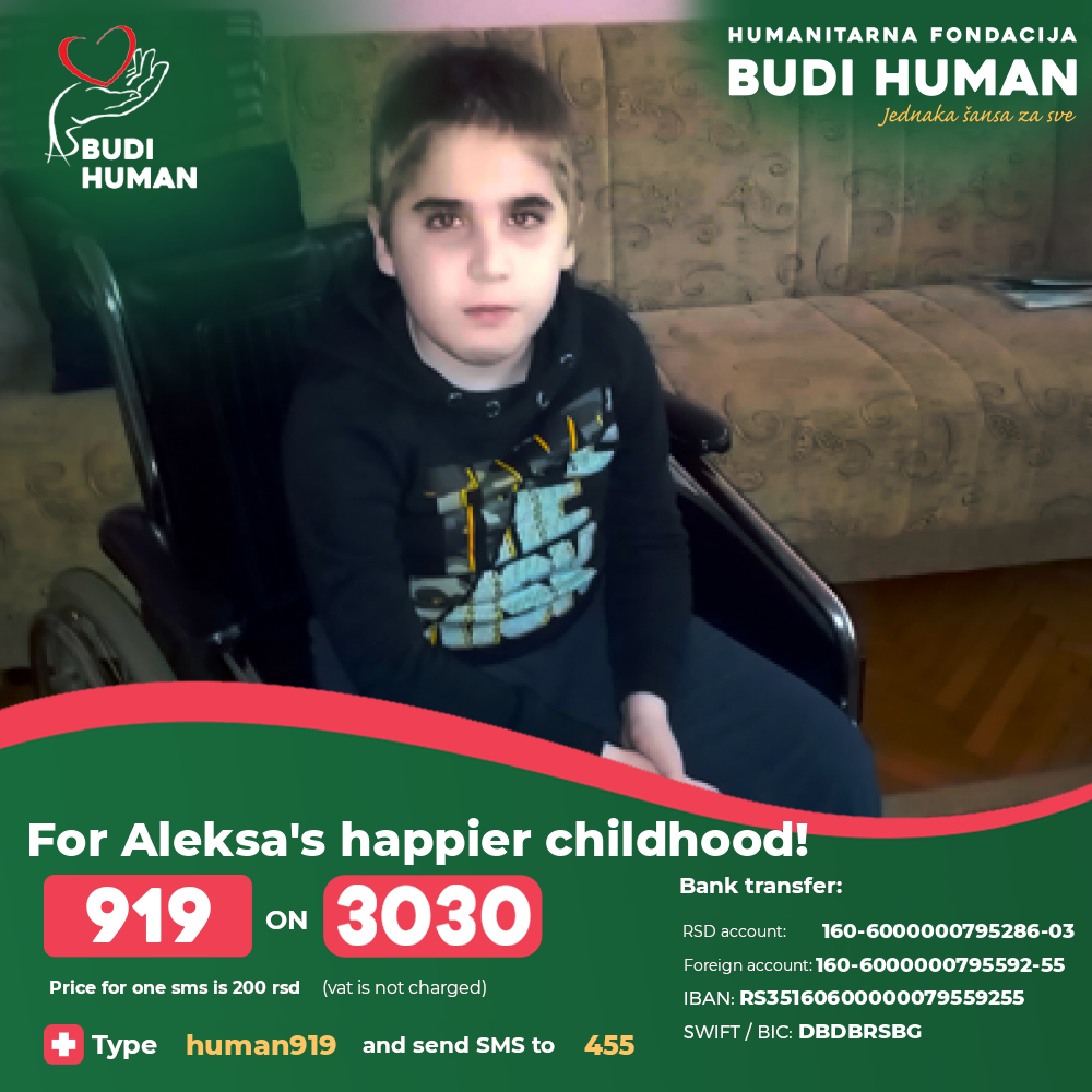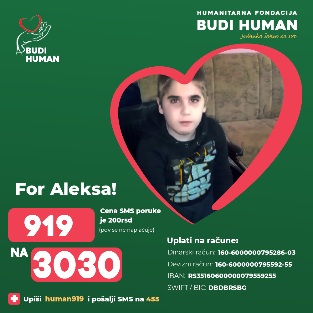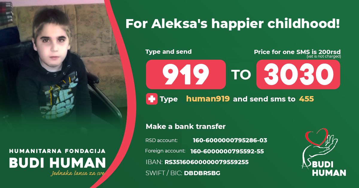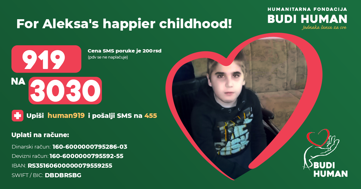For Aleksa's happier childhood! Let's be humane!