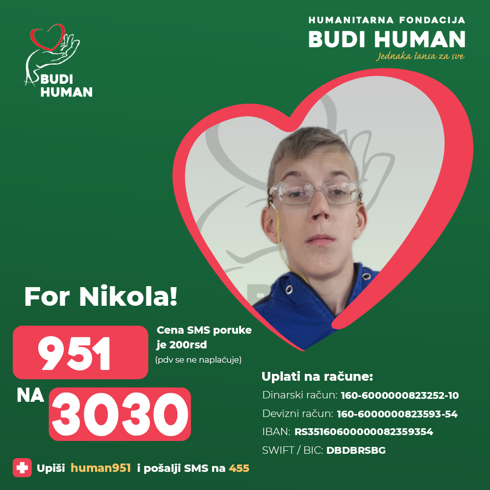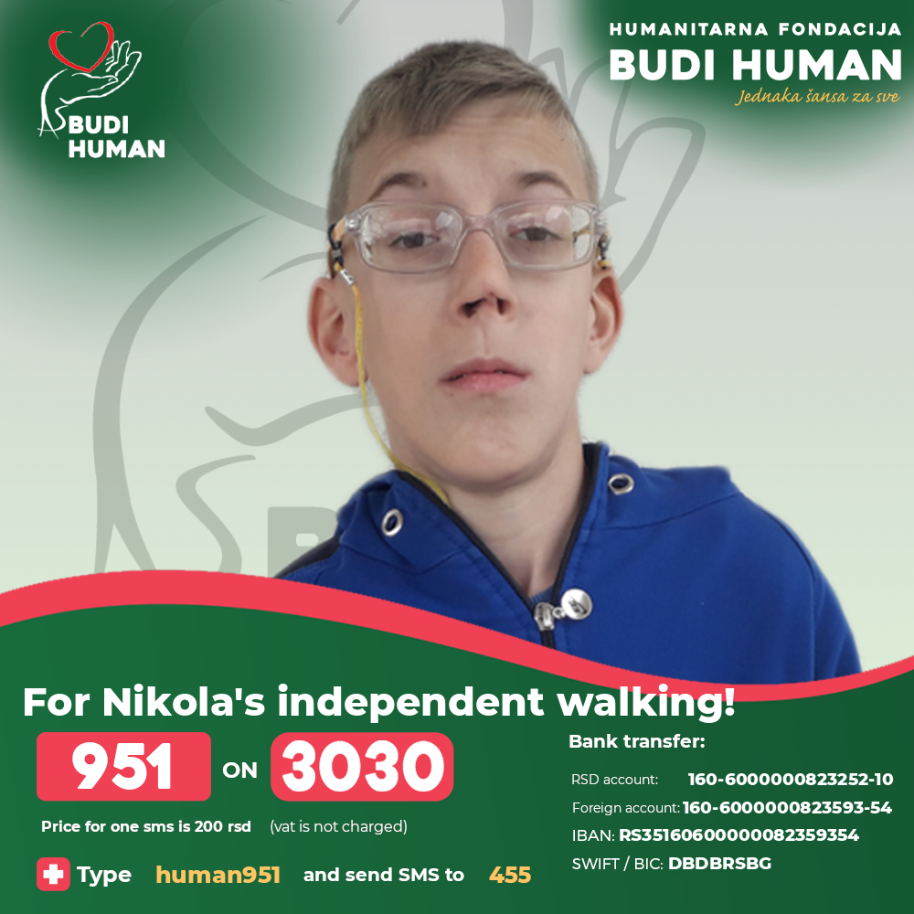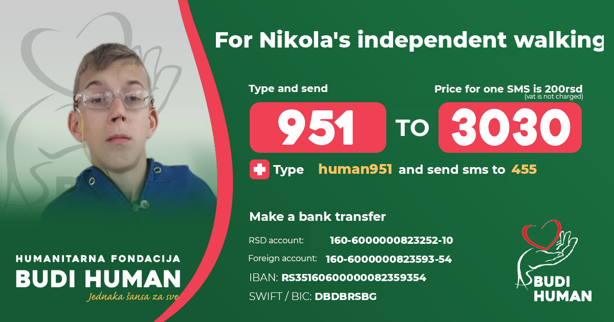 Nikola raises funds for surgery, rehabilitation, physical, speech therapy, special education and psychotherapy. He also needs funds for the medicines, laboratory analyzes, spa treatment, travelling and accommodation costs.