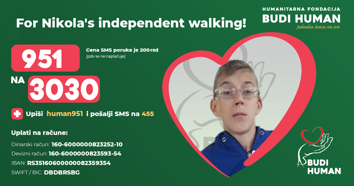 For Nikola's independent walking! Let's be humane!