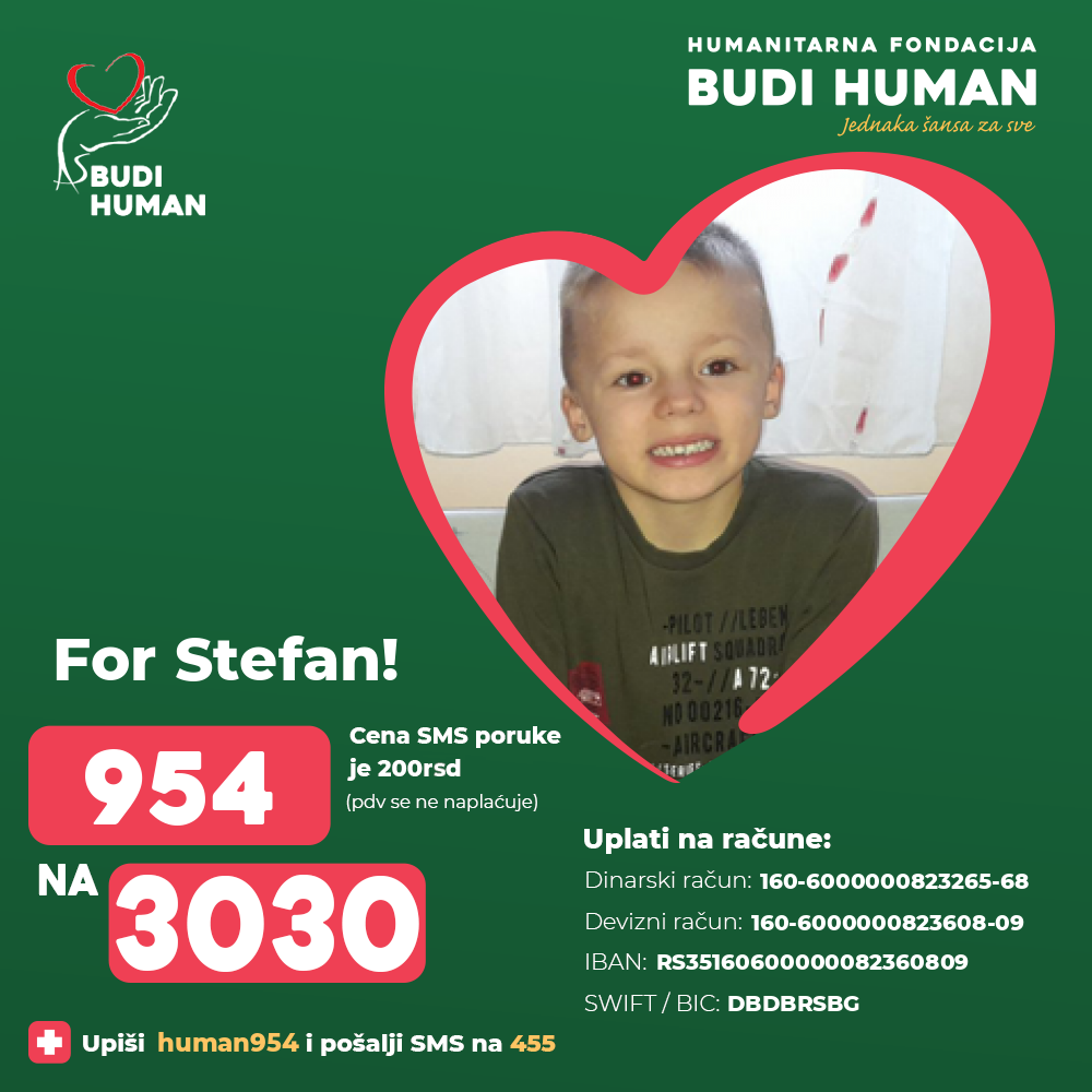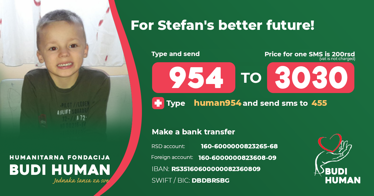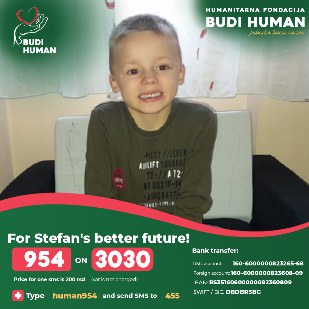 In August 2020, Stefan's parents received the result of a genetic test from Slovenia, where, unfortunately, Dischen's muscular dystrophy was confirmed (a disease that is present at birth, but the first disorders are noticed between age of 3 and 5, affecting only the boys, it is manifested by muscle atrophy, deformities, contours, disturbances of the heart and breathing due to the involvement of the heart muscles. Over time the disease becomes more progressive and children lose the ability to walk).