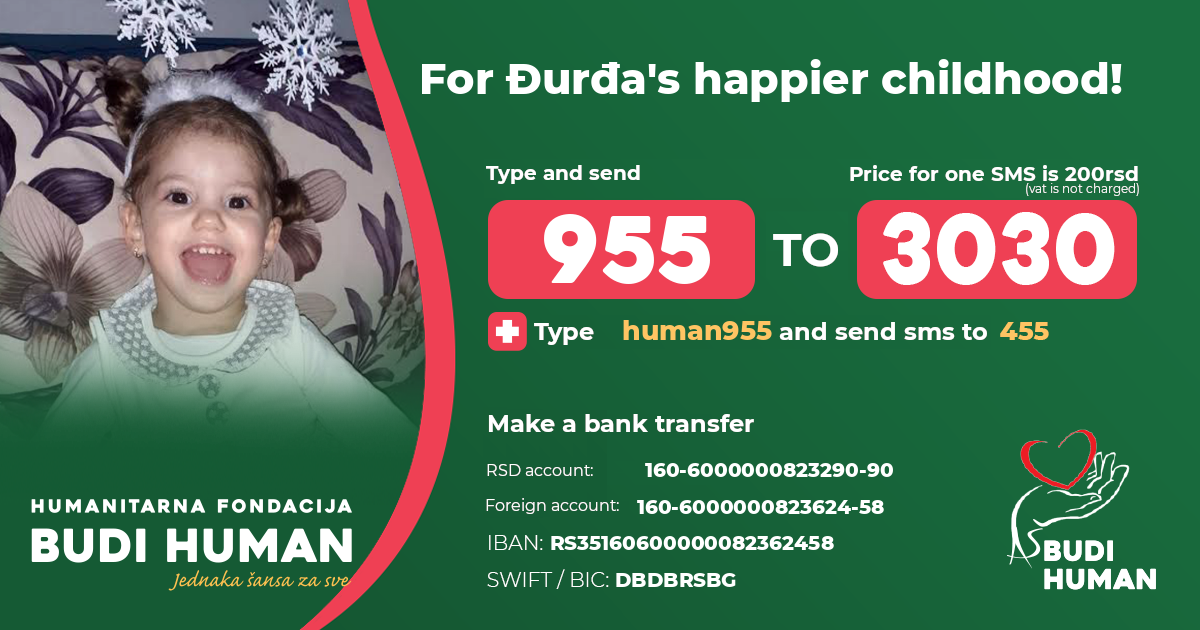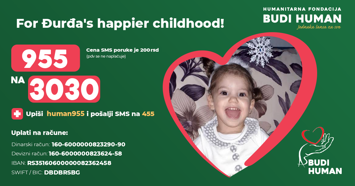 For Đurđa's happier childhood! Let's be humane!