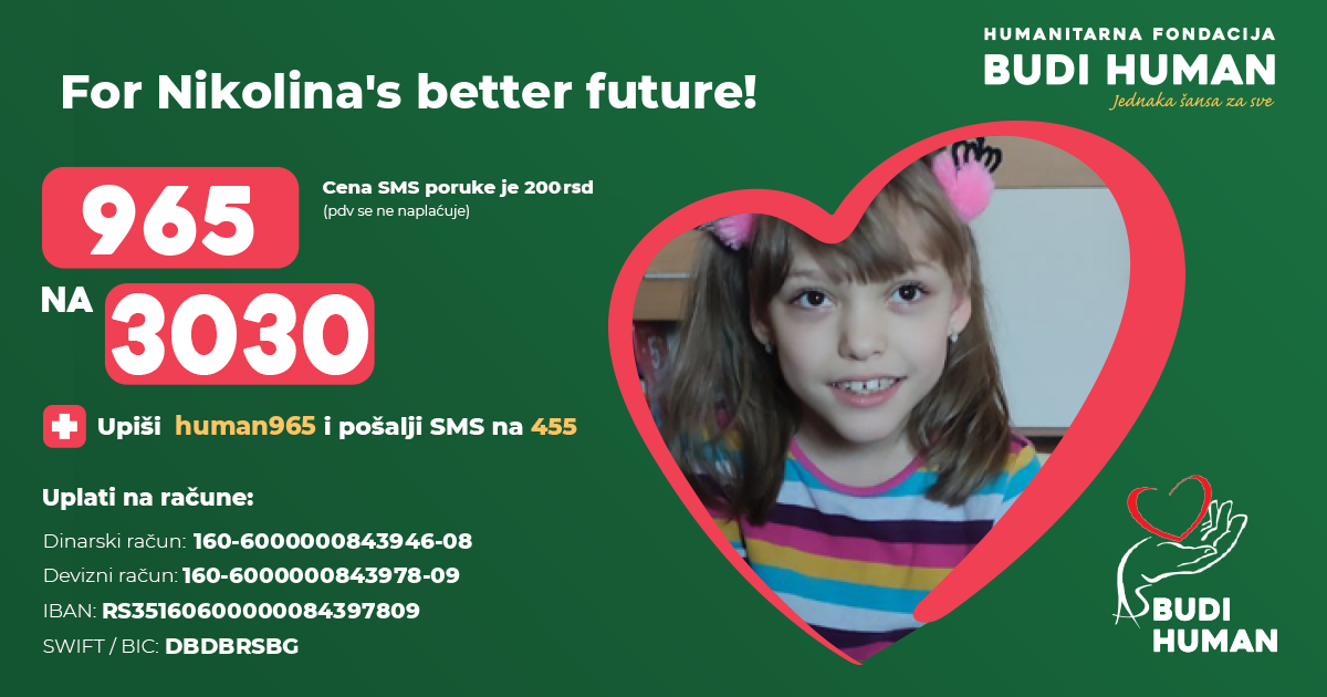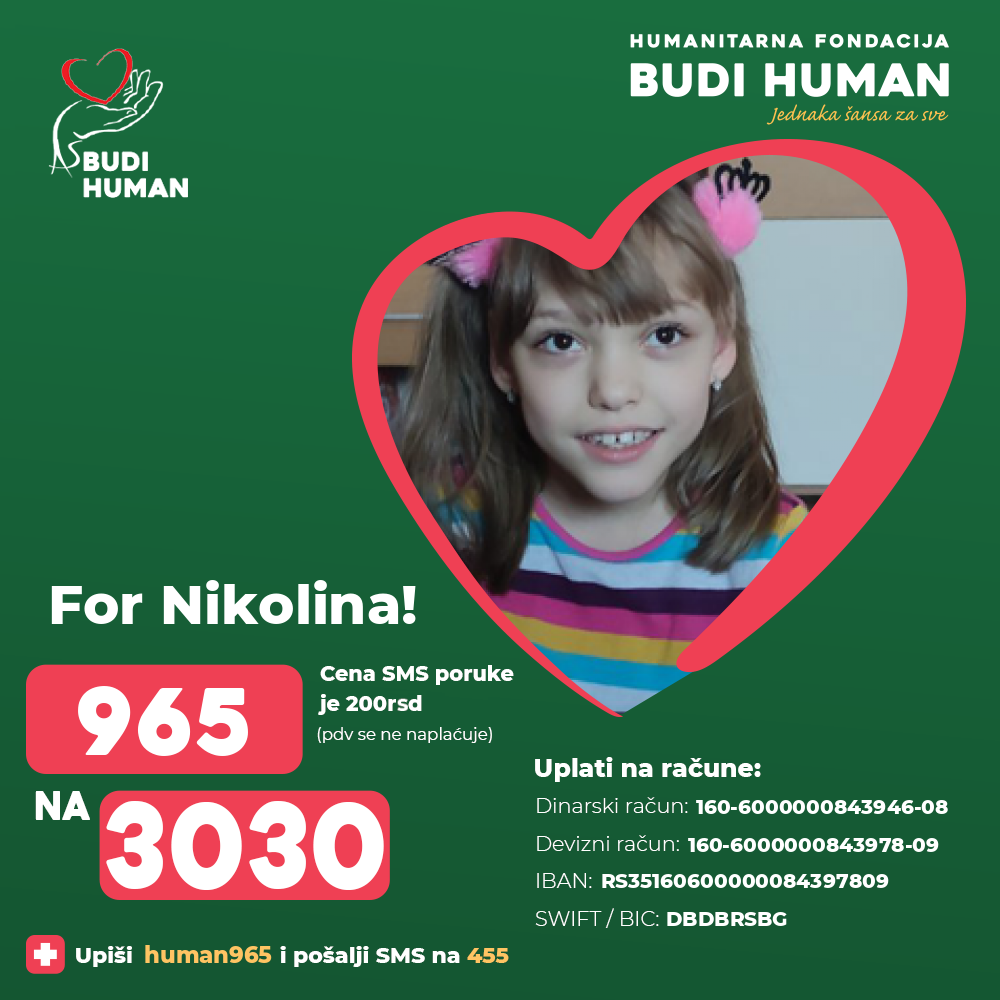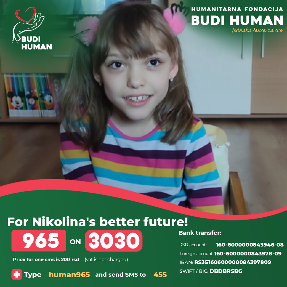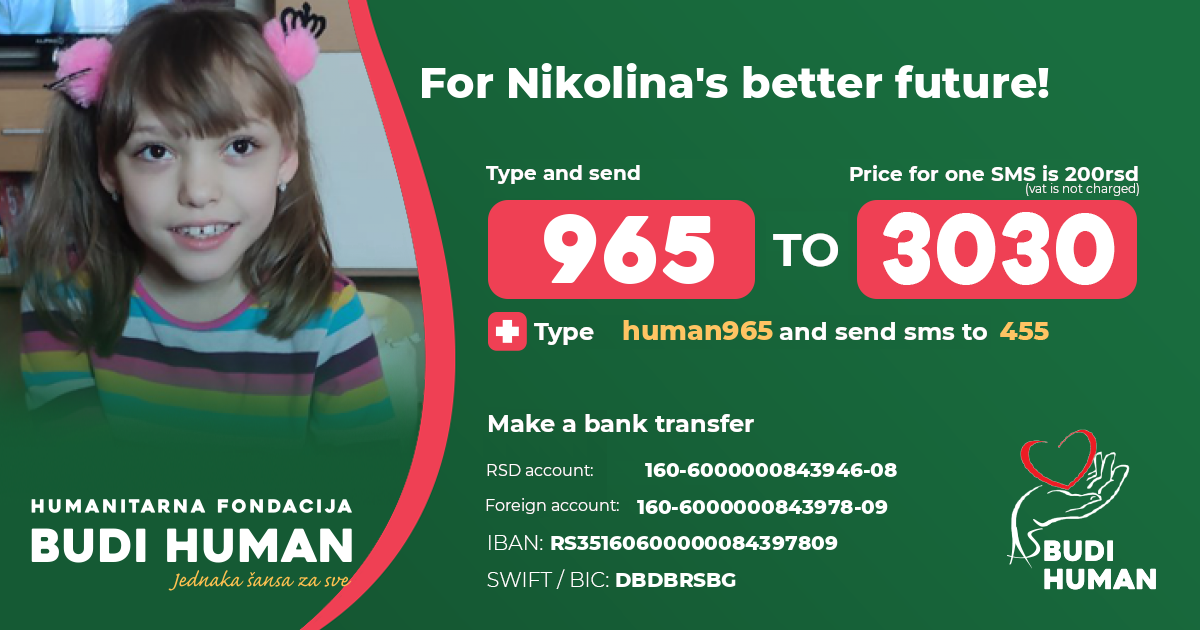 For Nikolina's better future! Let's be humane!