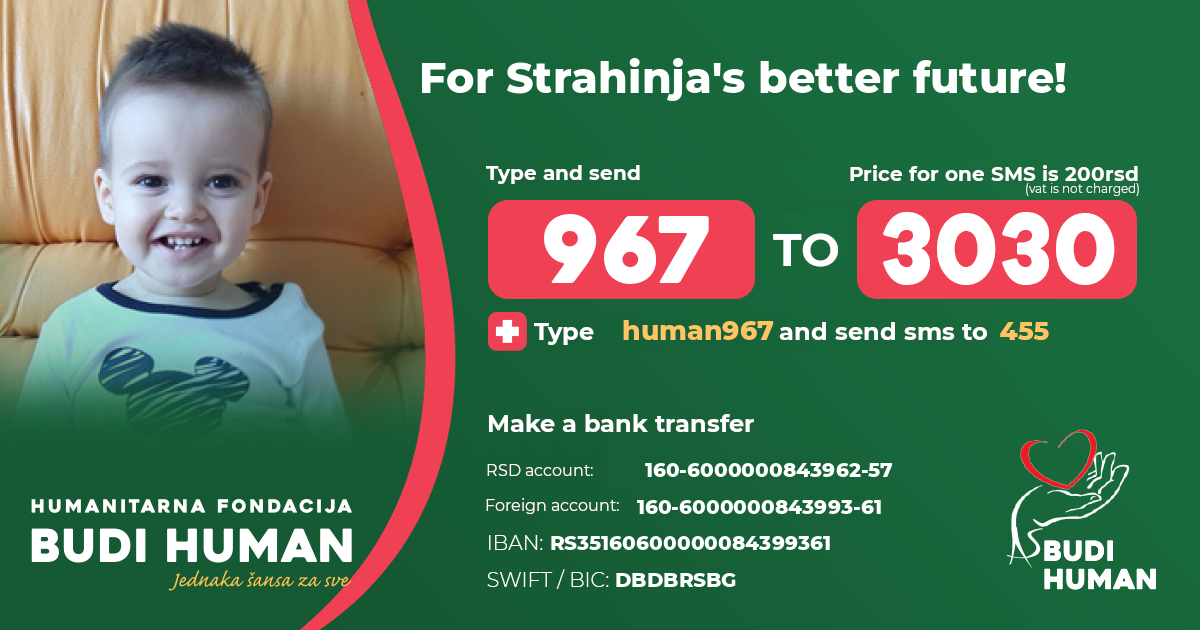 For Strahinja's better future! Let's be humane!