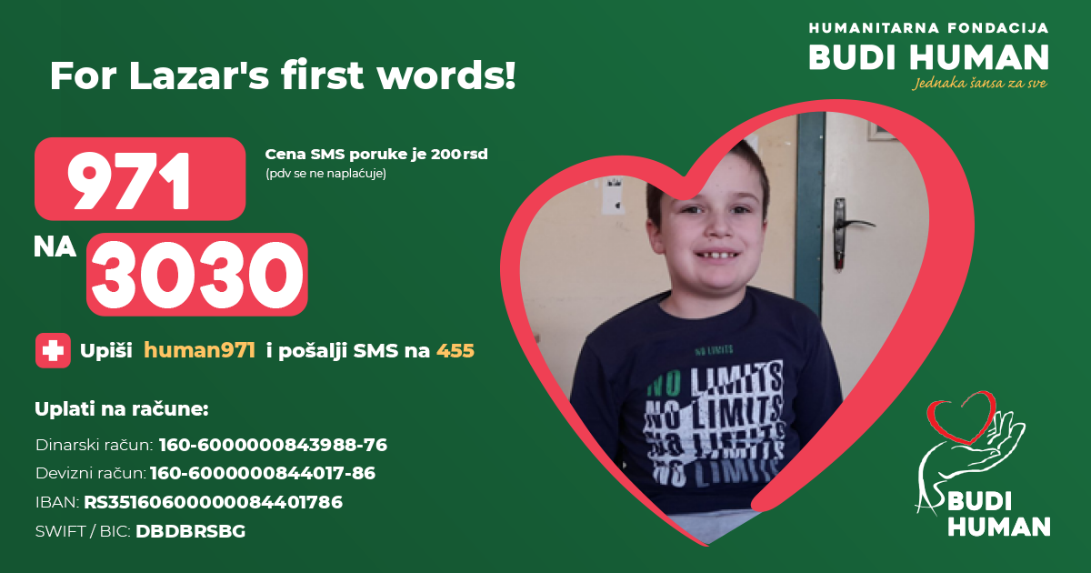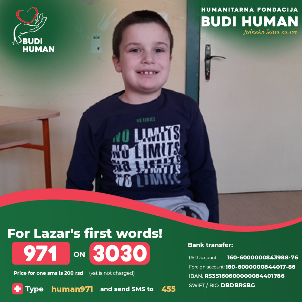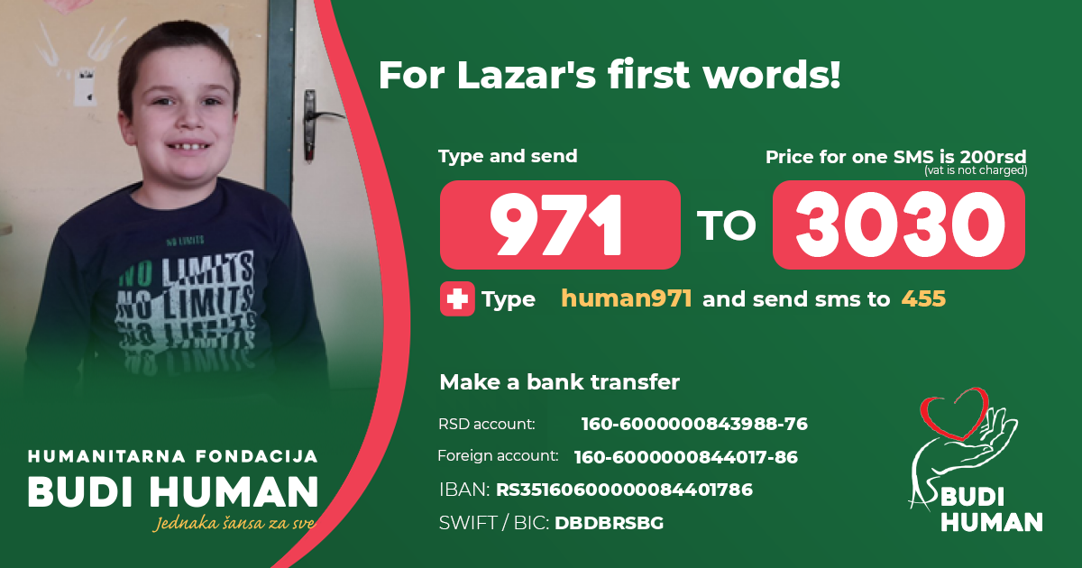 Parents ask all generous people to help as much as they can so that Lazar can speak up as soon as possible.
