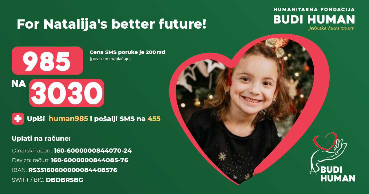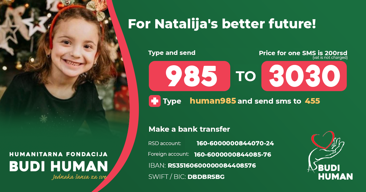 For Natalija's better future! Let's be humane!