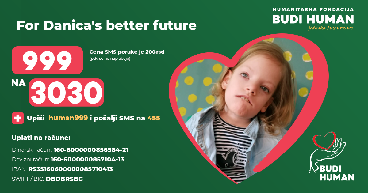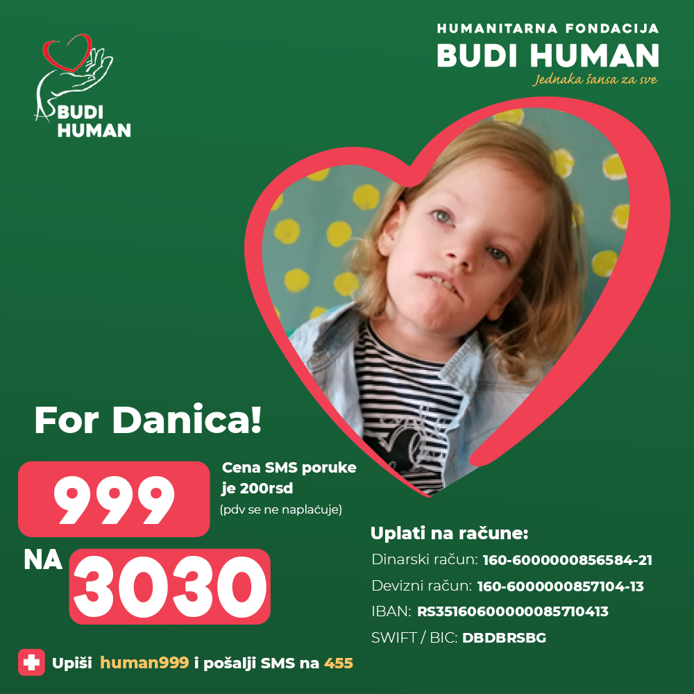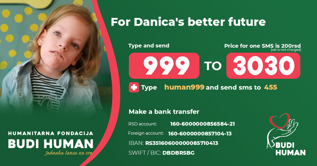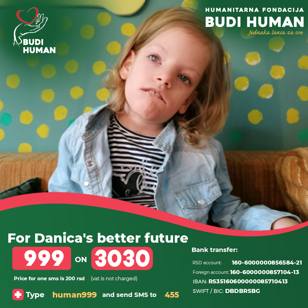 Her parents ask all generous and humane people to help, as much as they can and make Danica's long and painful struggle easier.