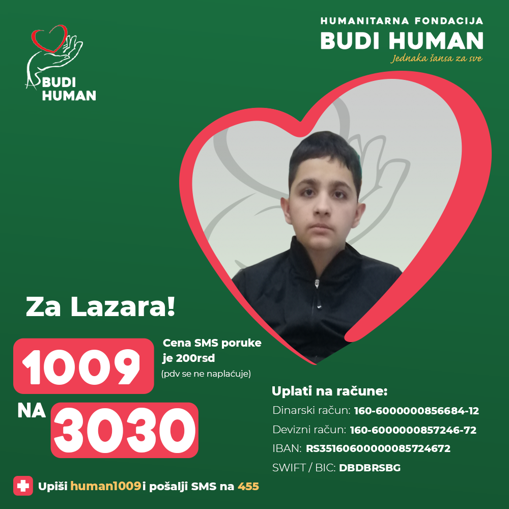 Zahvaljujući humanim ljudima Lazar je prikupio sredstva za operativno lečenje u inostranstvu, ali sredstva su i dalje potrebna za rehabilitacije, dijagnostičke i kontrolne preglede, lekove, suplemente, za sprave za vežbanje u kućnim uslovima kao i za putne troškove i smeštaj.