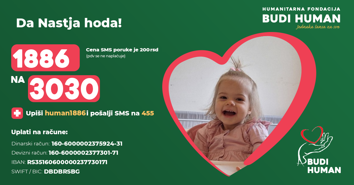 prikuplja novčana sredstva za Nastju Stevanović (2024).