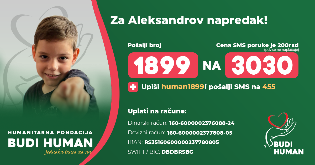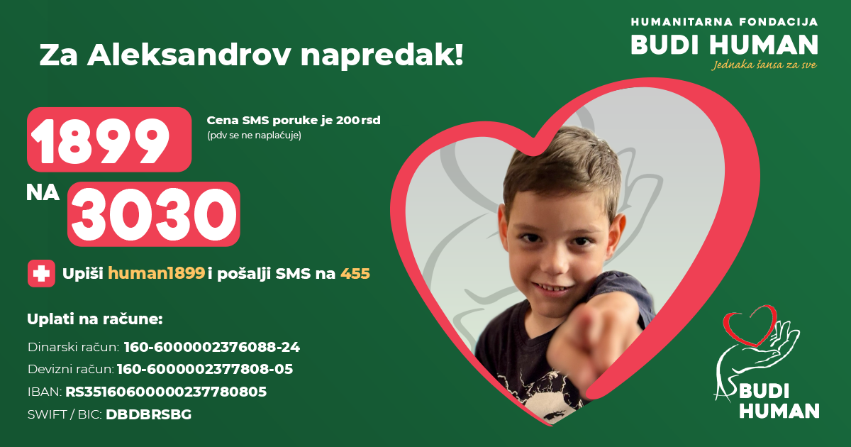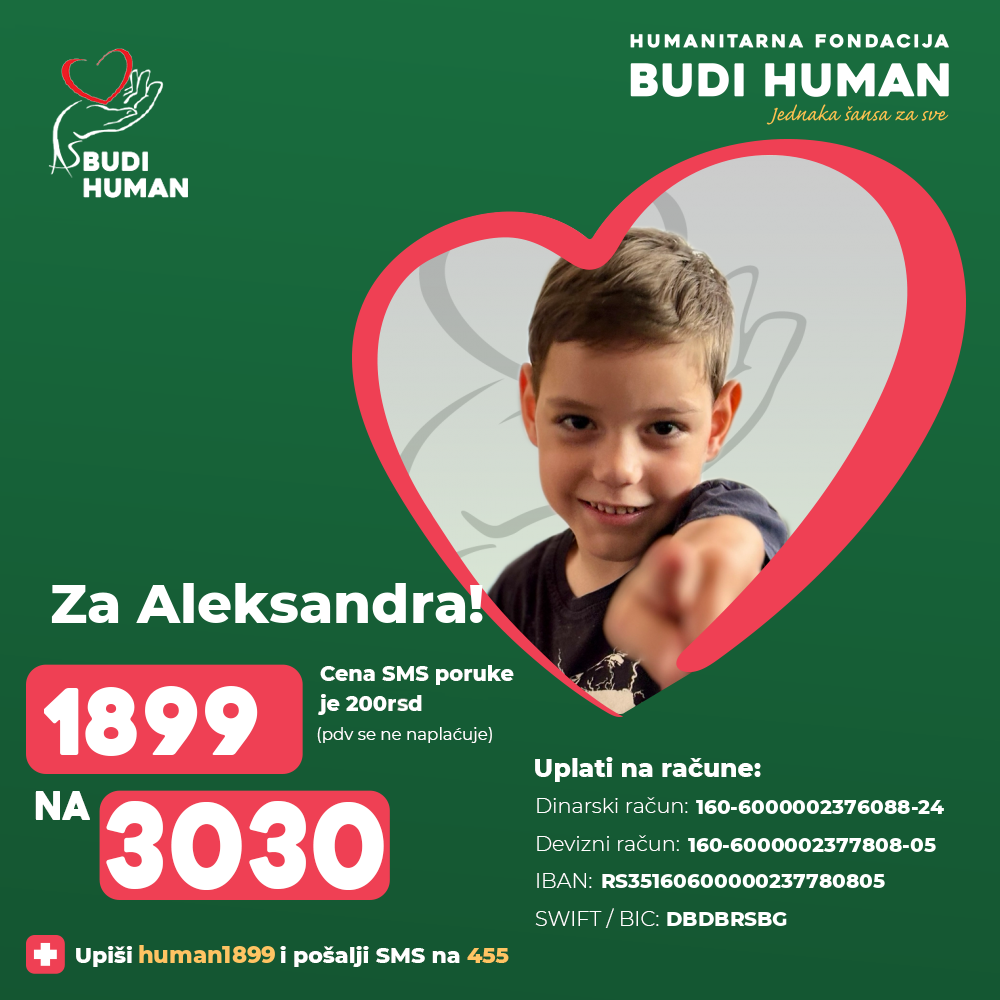 prikuplja novčana sredstva za Aleksandra Vasića (2018).