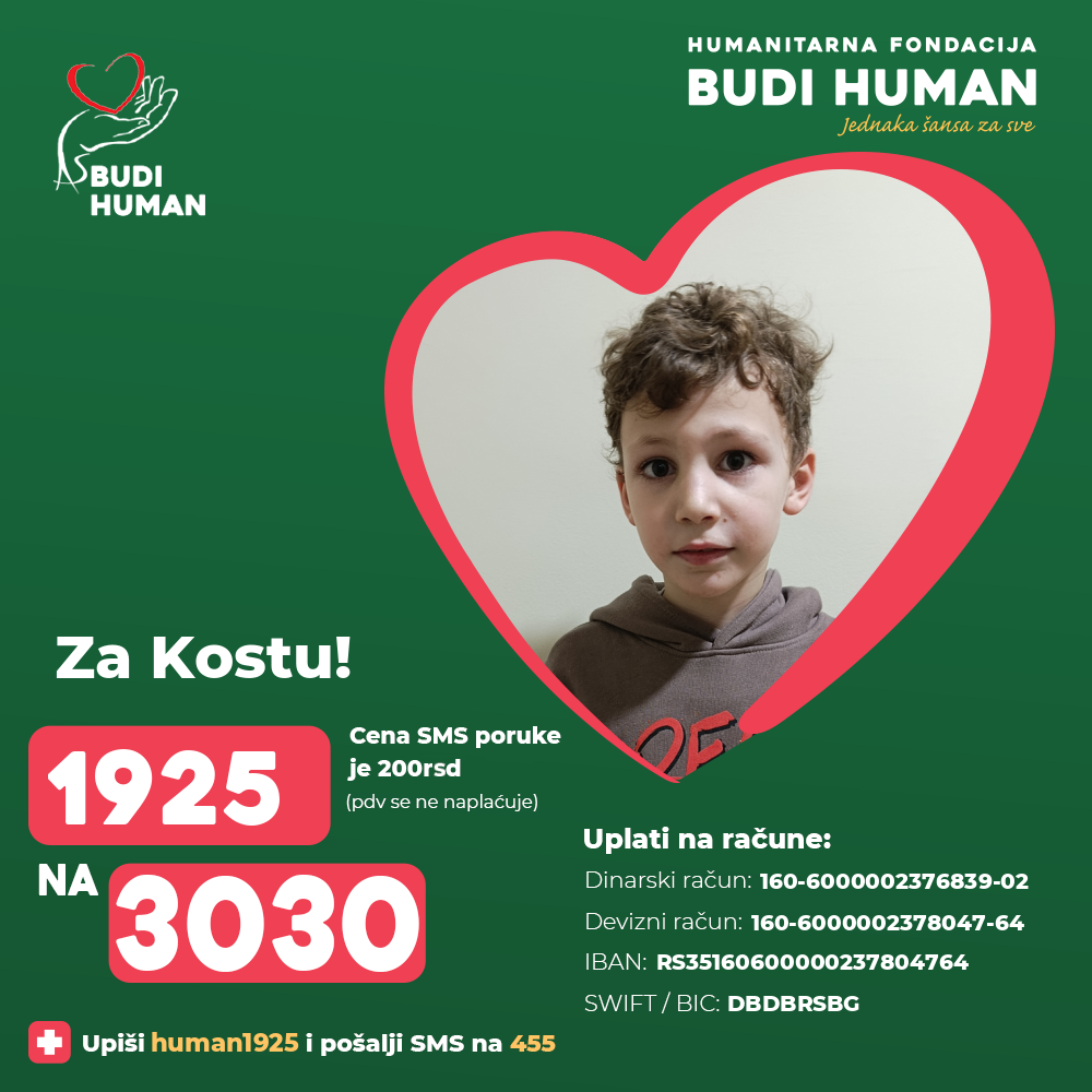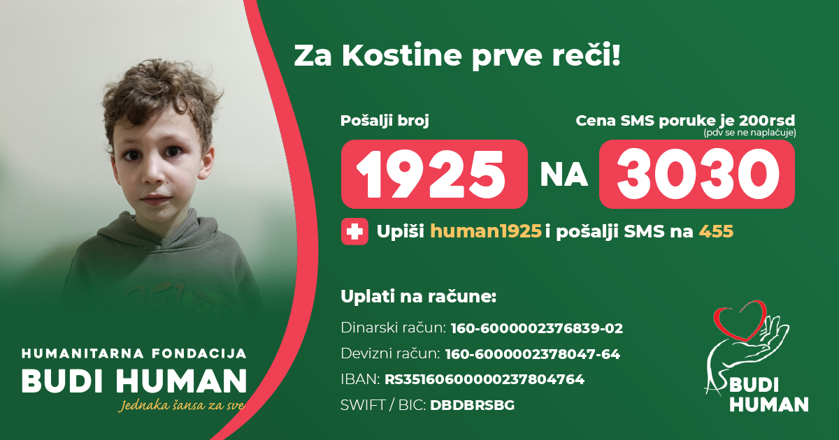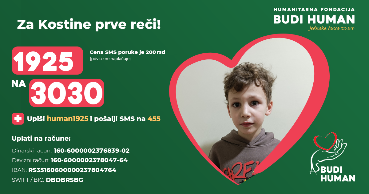 Za Kostine prve reči! Budimo humani!